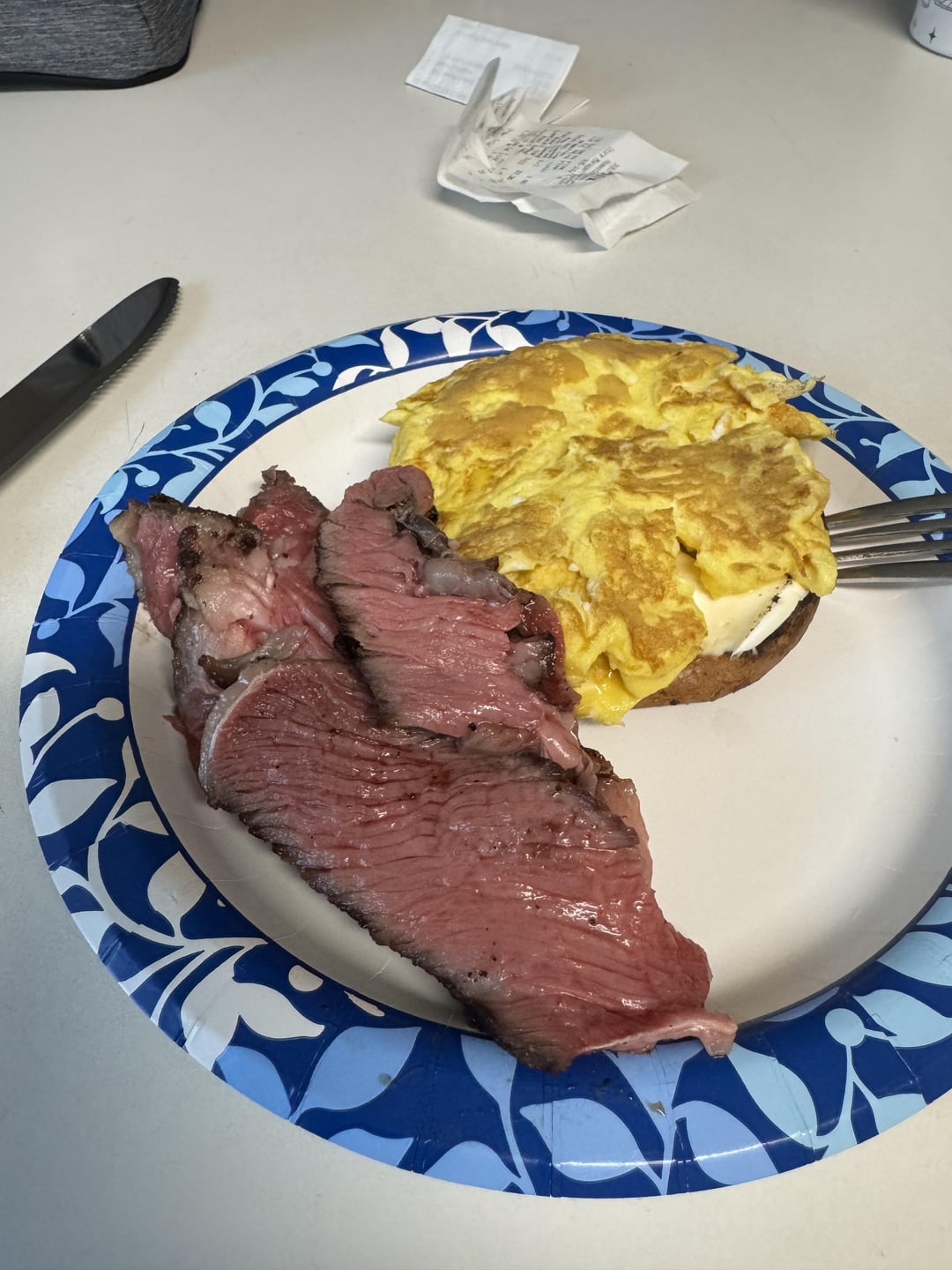 Seasoned with salt and garlic. 127° for 3.5 hours. Seared on cast iron. Wish I could’ve went longer but to get to sleep. Put in fridge and seared a few hours later. Delightful