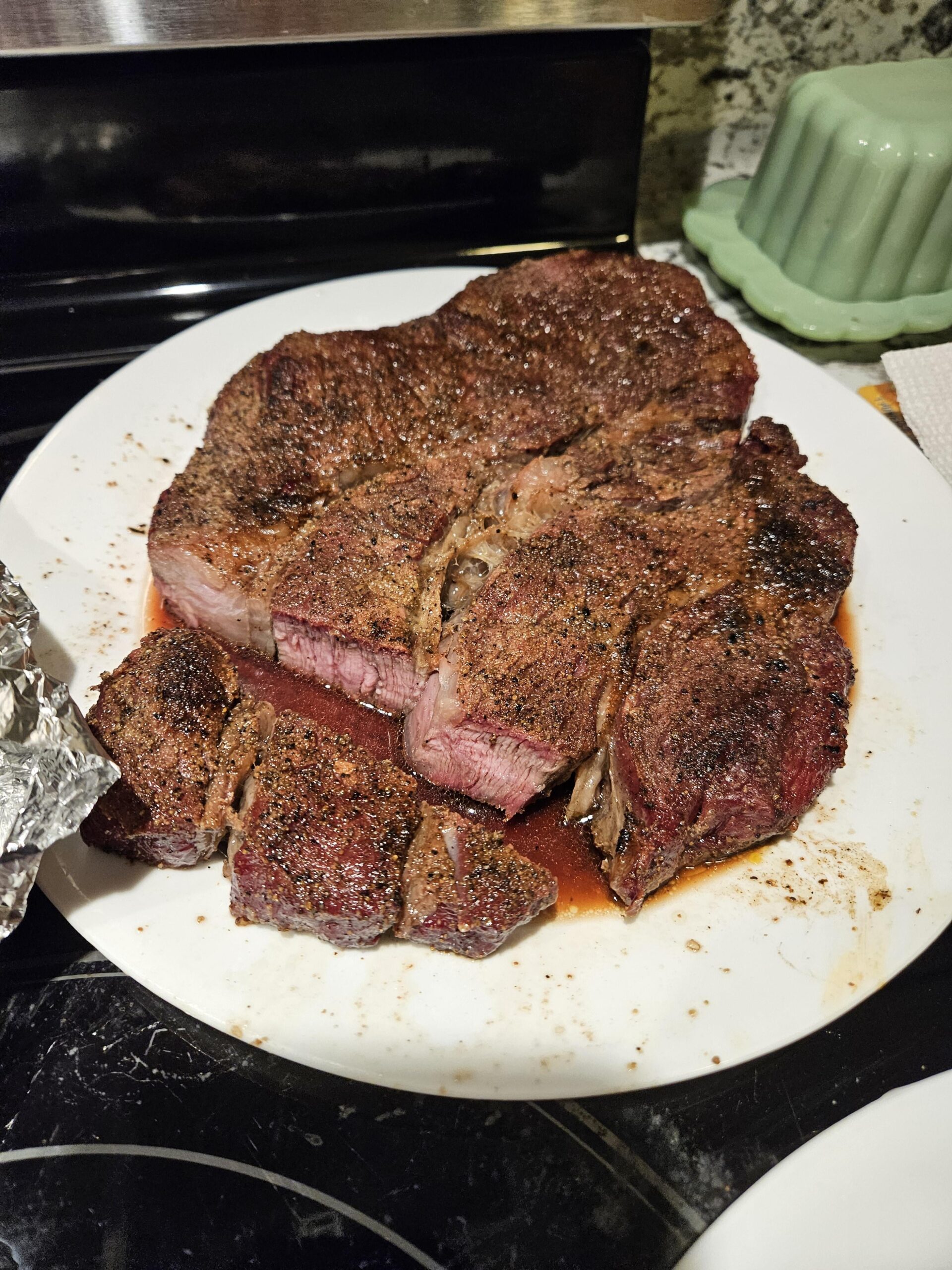 First time try at reverse sear. Both cuts came out perfect. Traeger pro 22.by SpaceyBakedBean 4 Comments rnldjrd 1 year ago Is that a chuck roast? Mycroft_xxx 1 year ago Looks amazing 🤩 gckless 1 year ago Reverse sear is the only way I cook steak now. innergflow 1 year ago What sear?Write A CommentYou must be logged in to post a comment.