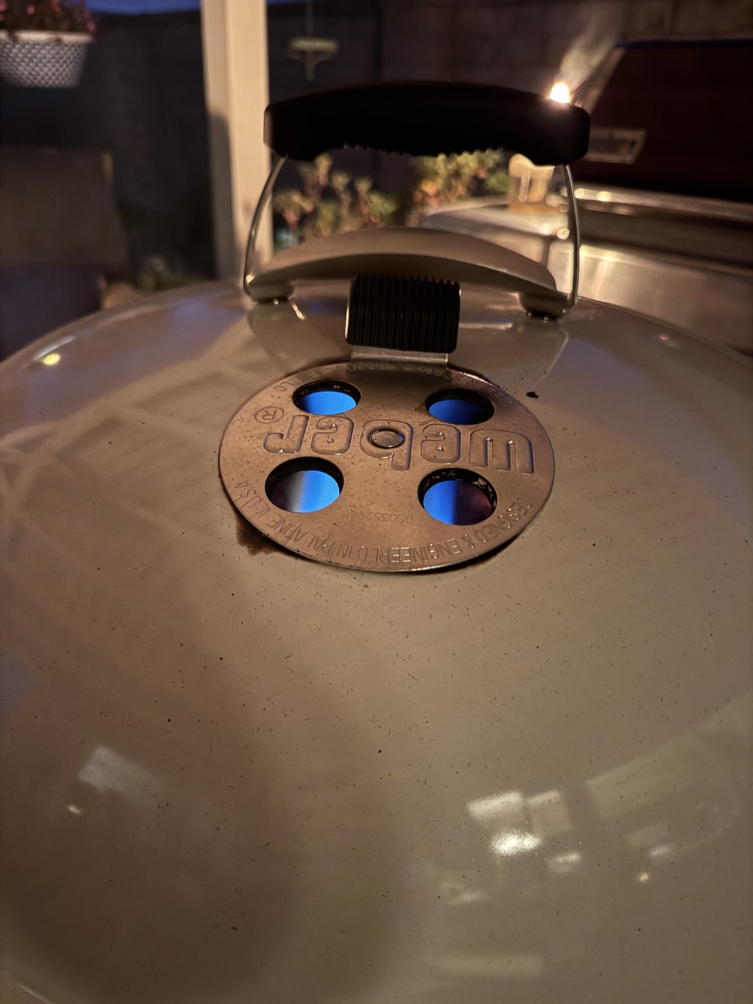 The Venom is a super charger for the Vortex. I tried the Vortex using the Venom in passive mode. Venom turned off, vent slide all the way open. Grill dome temp was around 500°. I turned the Venom fan on to max speed and the temp shot up well over 600° within 5 minutes. The needle was pinned all the way around. The air coming out the top vent went from a slow flow to a blow dryer on high. Check out the pic of the Vortex blue flame.