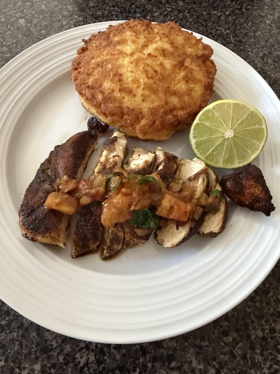 The chicken was really good, I liked the seasoning used. I don’t like raw veggies so I sautéed mine (onion, tomato, lime, seasoning) in the pan after I cooked the chicken and then topped with the cilantro.