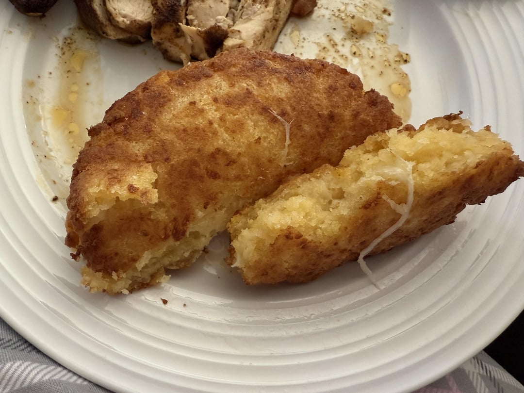 That being said, I wouldn’t get it again only cause that is just too much arepas for me. They’re kinda big. I ate half with my meal and I’ll take another to work to eat with the other half of the chicken meal. I most likely won’t eat the other two and I hate being wasteful. But it would definitely be better for someone who has another person or family to share the meal with. If I had known, I would have looked up to see if I could have frozen half the polenta and made the rest another time. This was different and fun though.