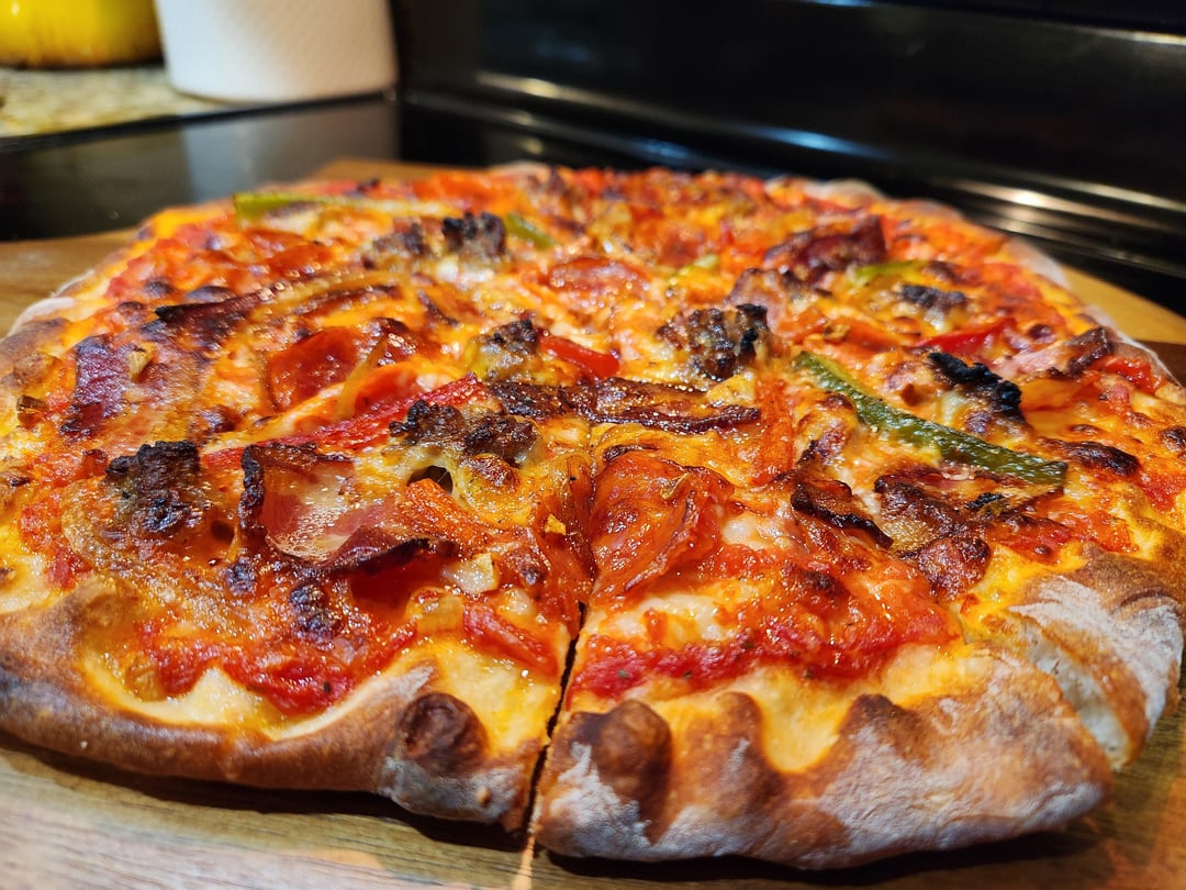 This is not a New Haven Pizza unless you were cooking it in a 700 degree coal fired oven. Also this is not a Serious Eats recipe, you are posting in the wrong sub.