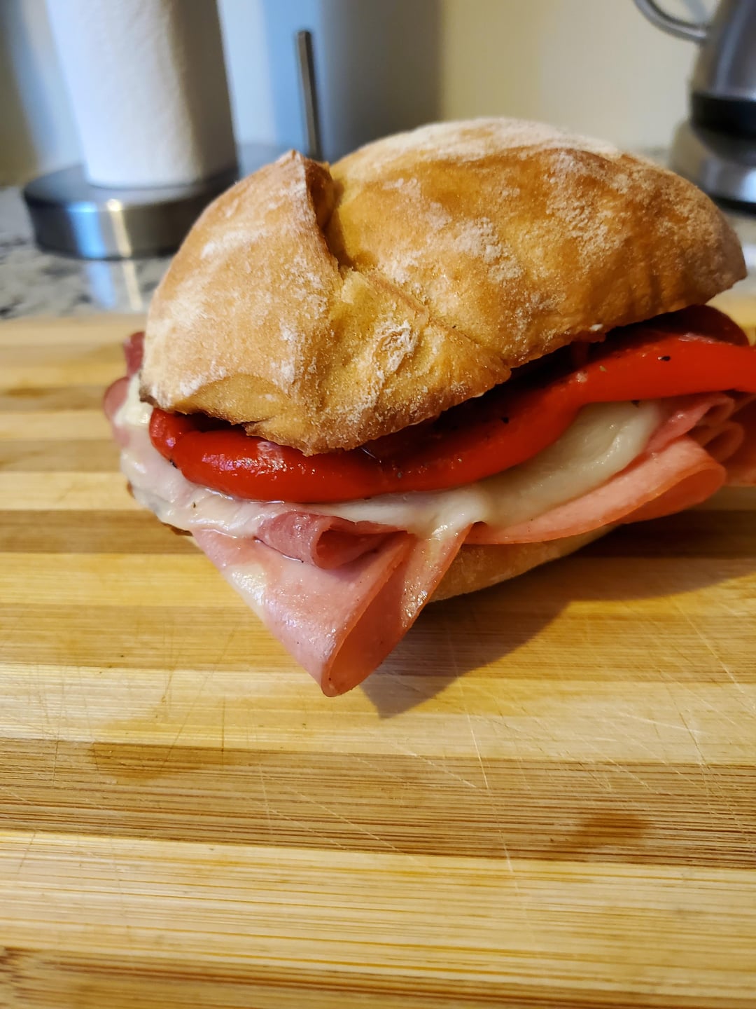 Toasted Mortadella sandwich on ciabatta with provolone and roasted peppers.by mayiplease2564 3 Comments lonelyexposure 10 months ago yummmyy!! WaySavvyD 10 months ago God Tier sammich YaBoiErr_Sk1nnYP3n15 10 months ago That looks 🔥🔥🔥 I’ll take 3Write A CommentYou must be logged in to post a comment.