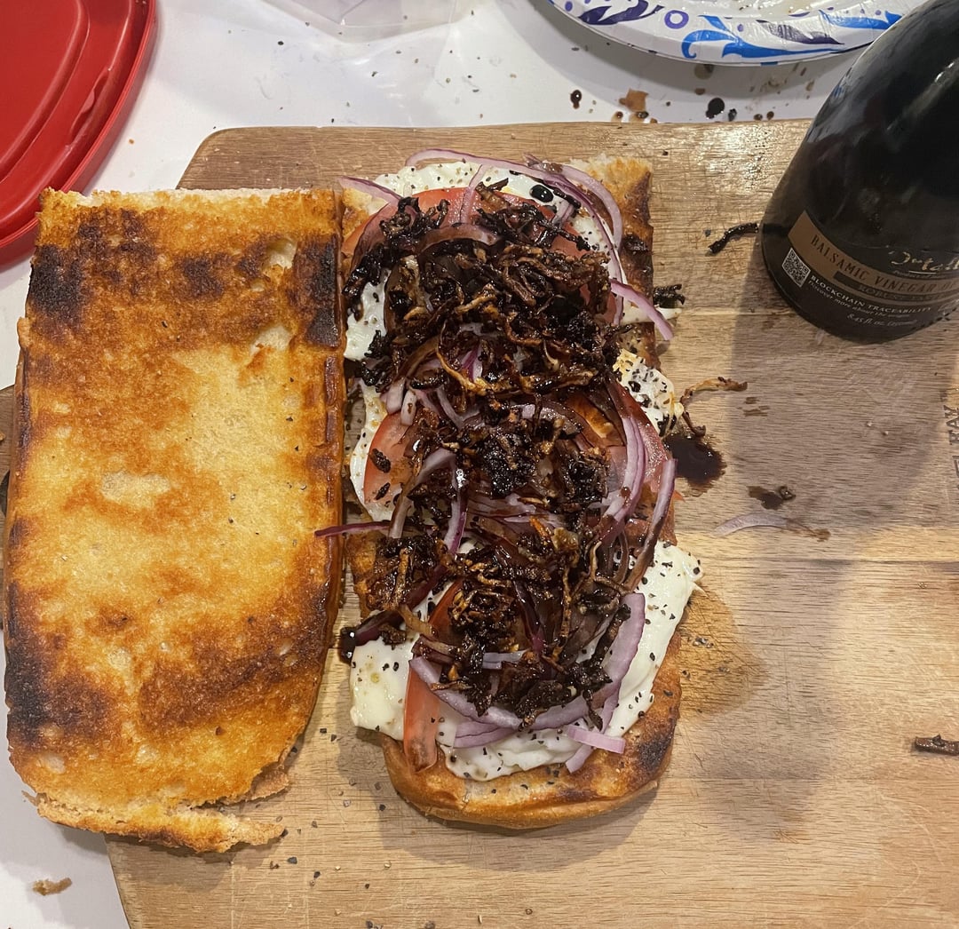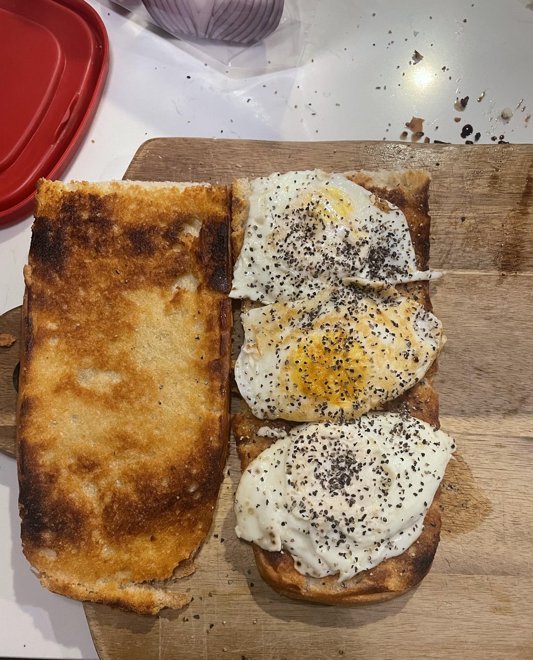 Random sandwich that we often make, and very affordable. It totals up to $3-4 at Walmart if you already have eggs and balsamic vinegar at home. May not be everyone’s ideal egg sandwich but the people I’ve fed it to have enjoyed it