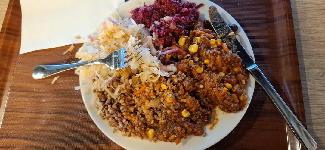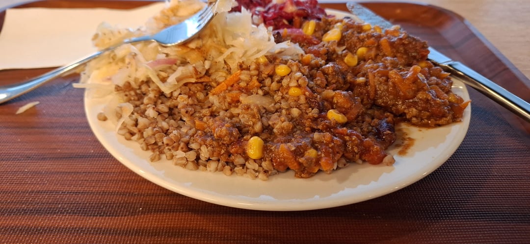 Corn chilli, buckwheat (theres a bit more than is visible here it just got buried) and beet and cabbage salad. Would 640 be too low?