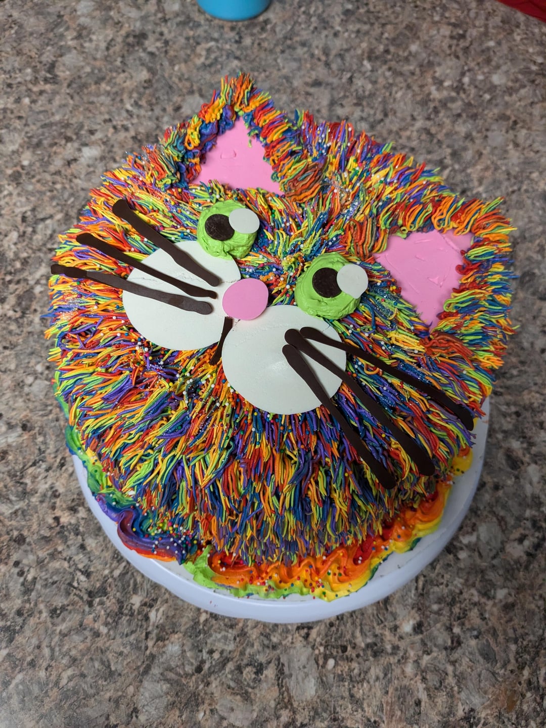 Five year old's birthday cake request was for a rainbow cat cake – which was a big surprise!