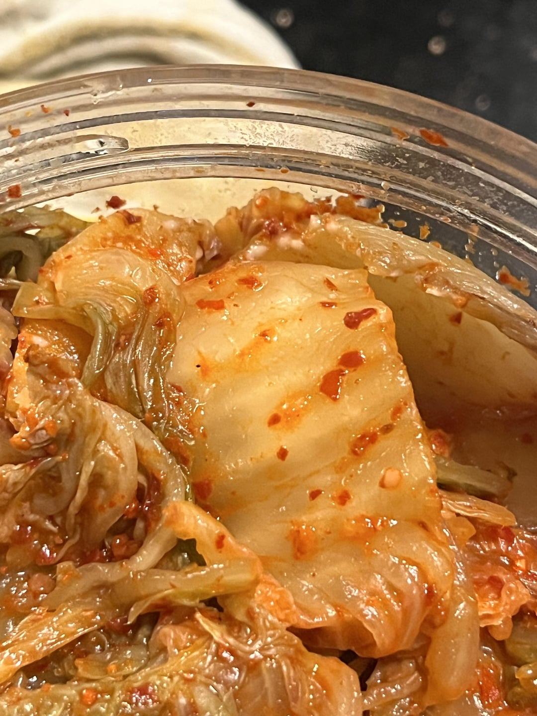 Hasn’t hit its expiry date but i opened the jar today and noticed these white spots. I probably have cross-contaminated with other cutlery, though i can’t say for certain. The jar is basically full, should I throw it out? I’m not particularly a kimchi expert.