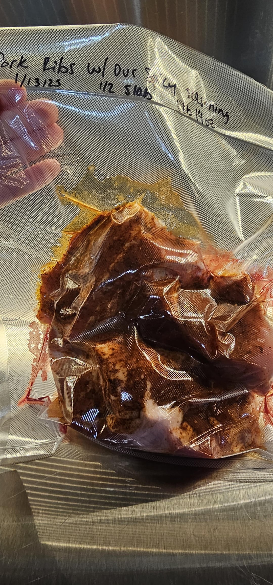 Found a deal and bought 23 pounds of pork loin. I was able to get a half slab of pork ribs on this deal. What would you recommend for time and temperature on a half slab of pork ribs? I use air sous vide in our oven and plan to broil for finish. I'll add a comment with the dry rub seasoning.