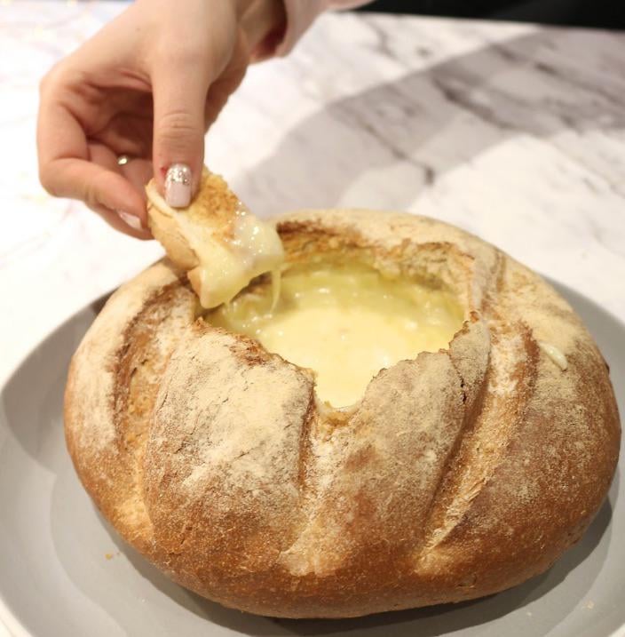 All you need is a round loaf of bread and a Camembert wheel.