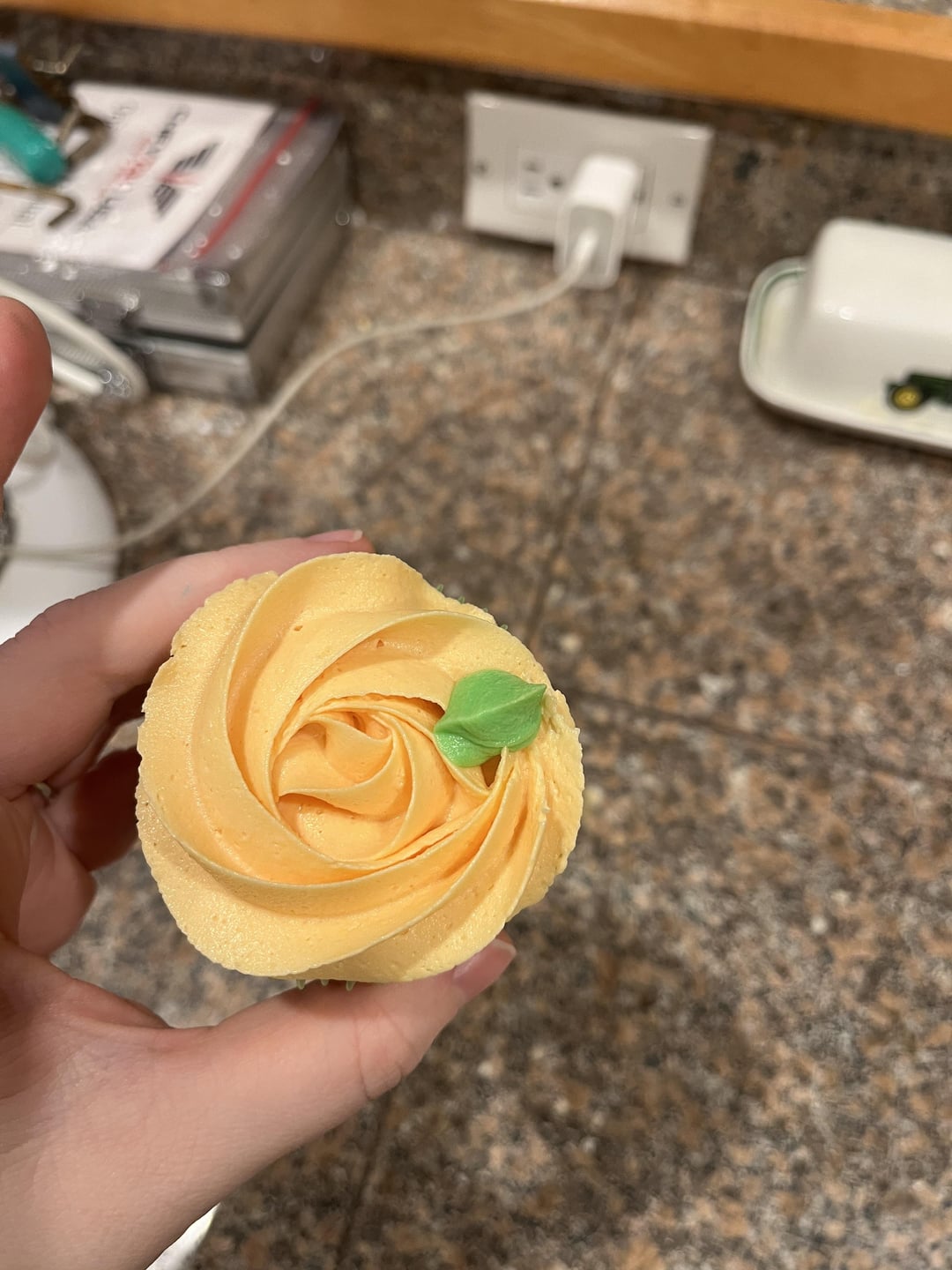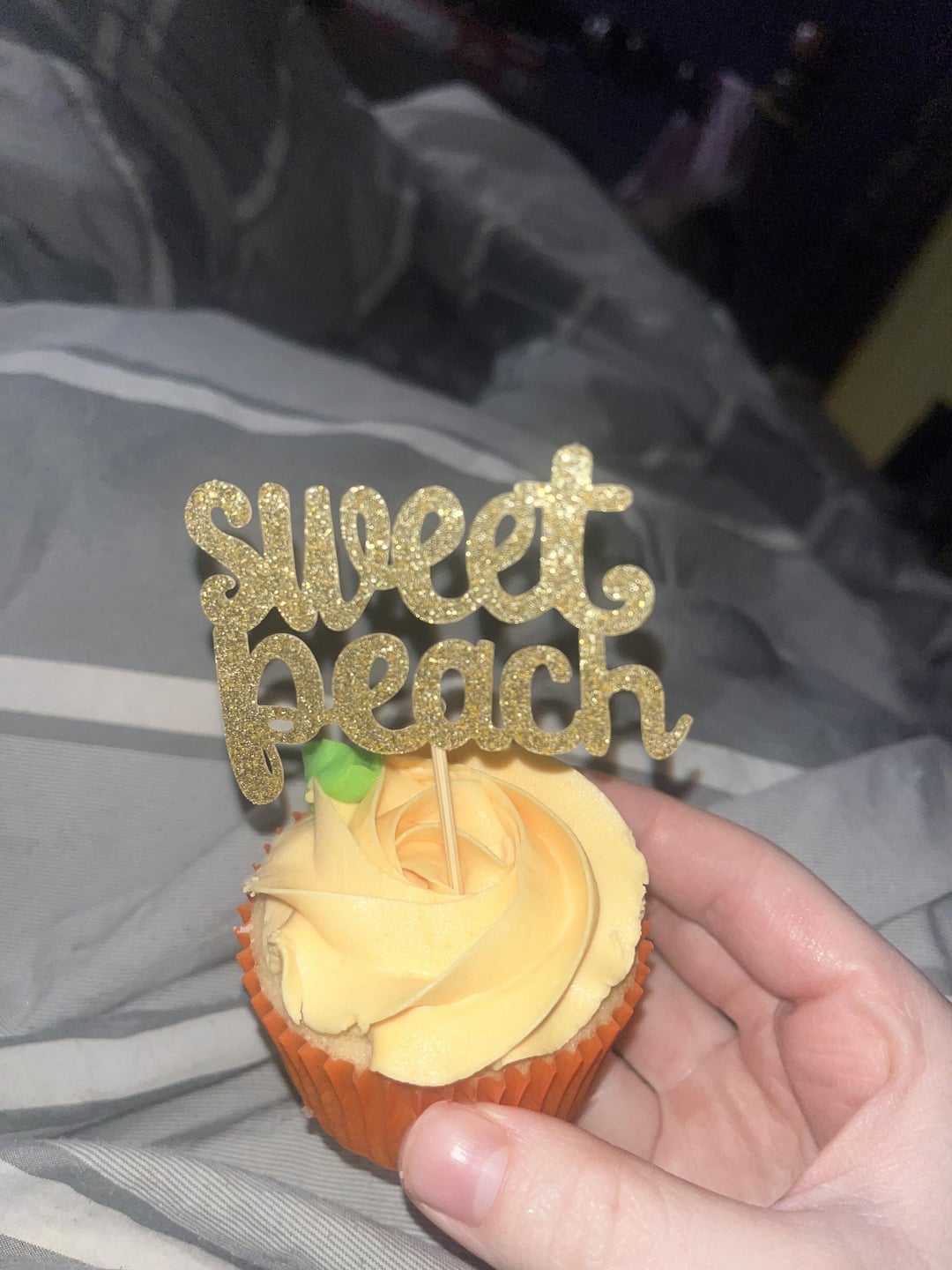 I’m pretty proud of it as this is only my second ever cake! I’ve since then learned how to make a smoother base layer on the sides and sharper corners on the top but overall I’m kind of proud of this one! Also made some cupcakes to match her One Sweet Peach birthday theme! Same thing as cake, vanilla cake vanilla buttercream and peach compote filling!