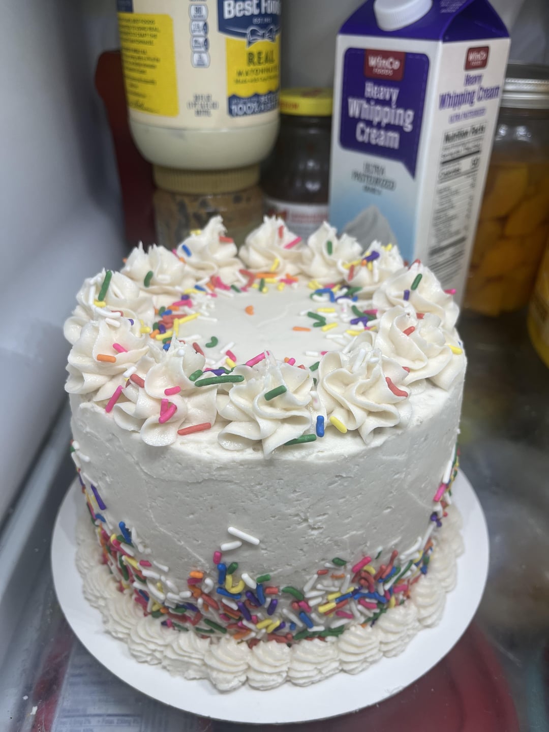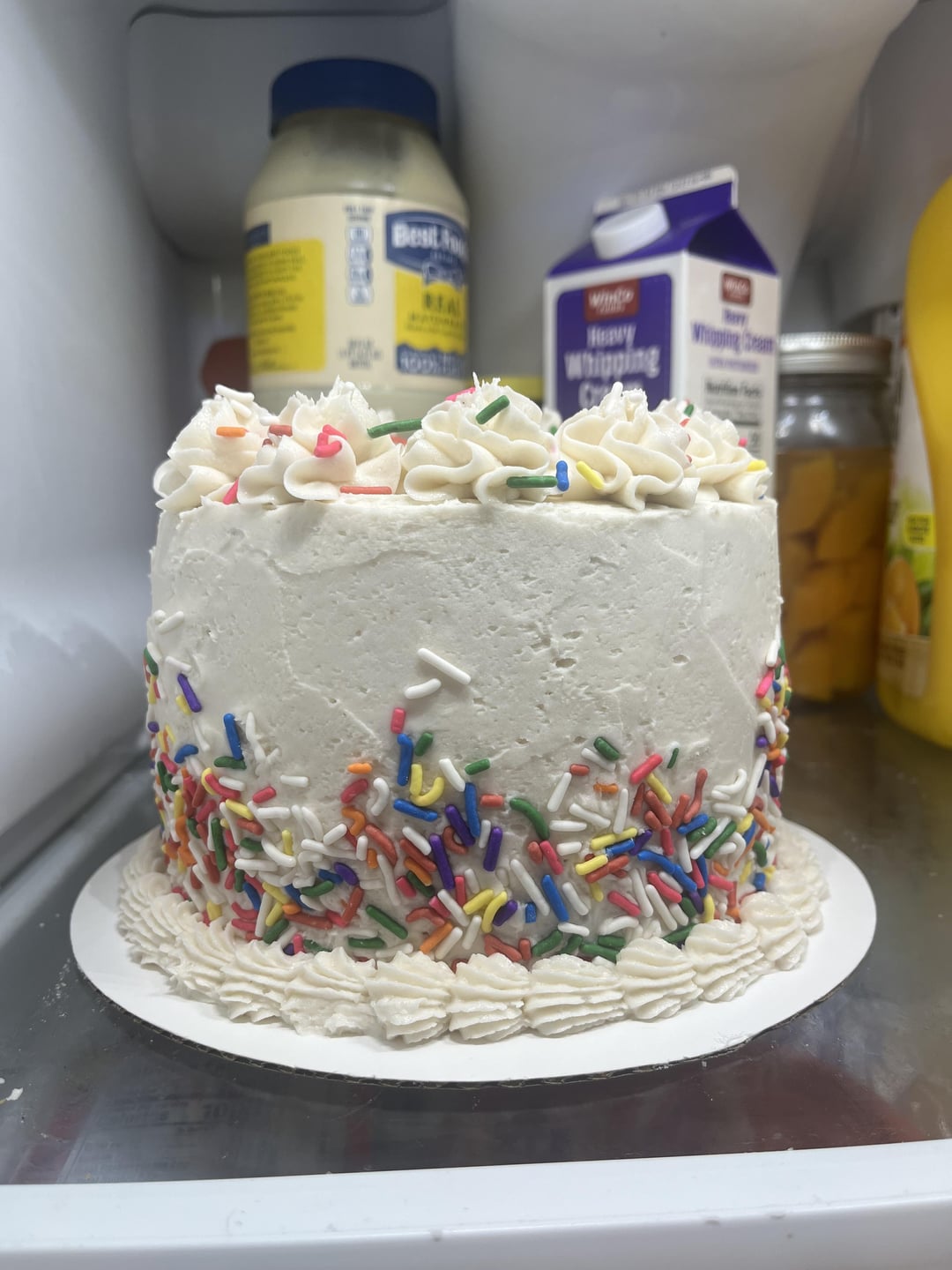 Made this vanilla cake with vanilla American buttercream and a peach compote filling for my daughter’s first birthday smash cake!