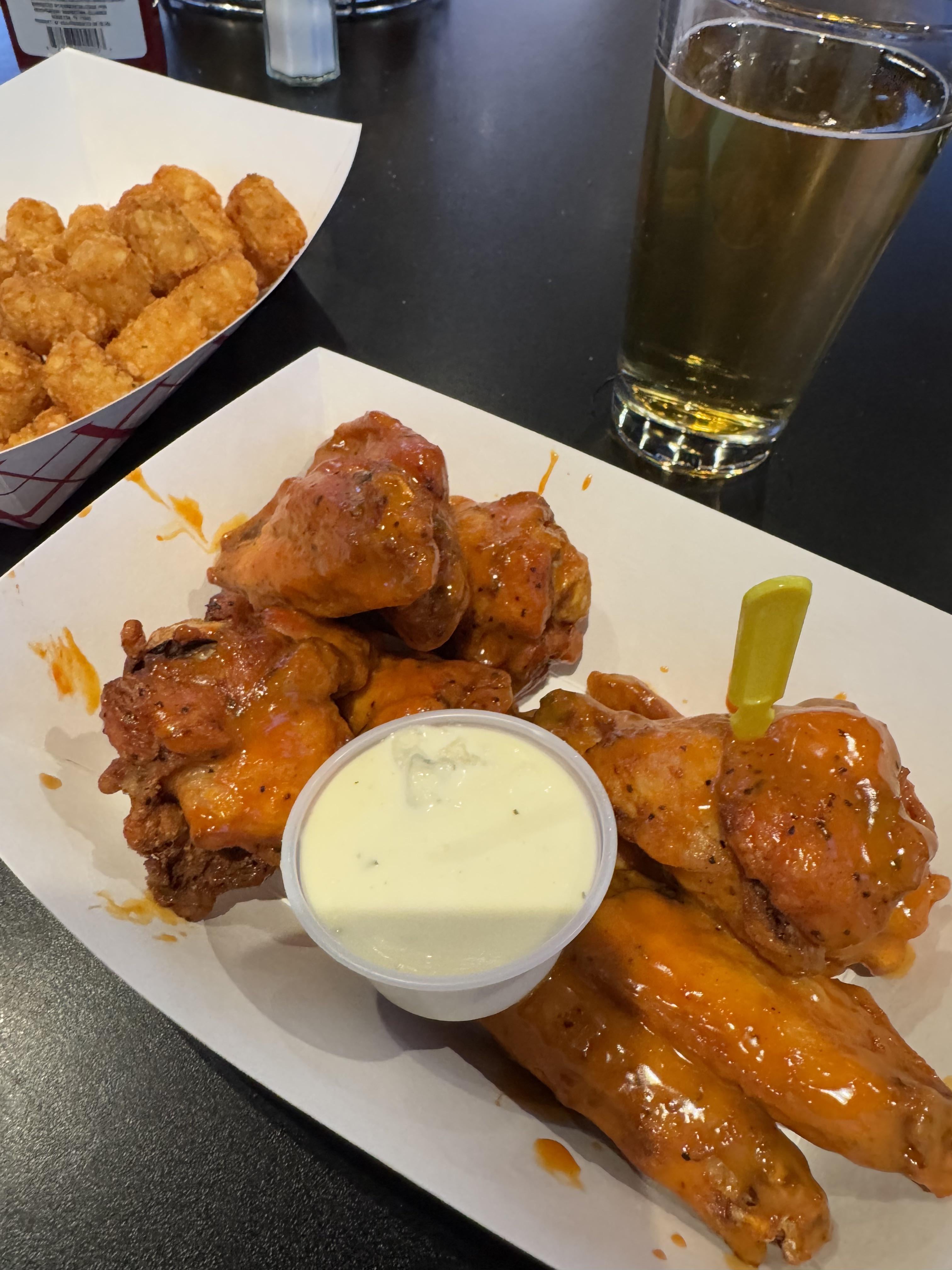 what? why are you filling yourself up with tots. id eat 100 wings and nothing else