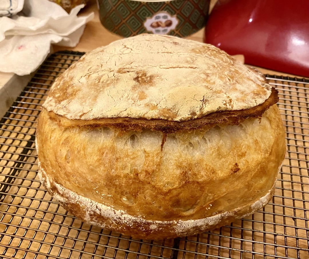 Tell her that’s a beautiful loaf! Nice ear and good open crumb