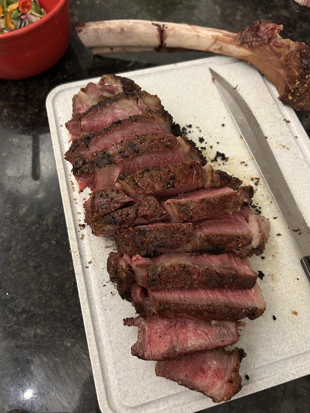 Seared for 90 seconds each side and let it rest for 10.