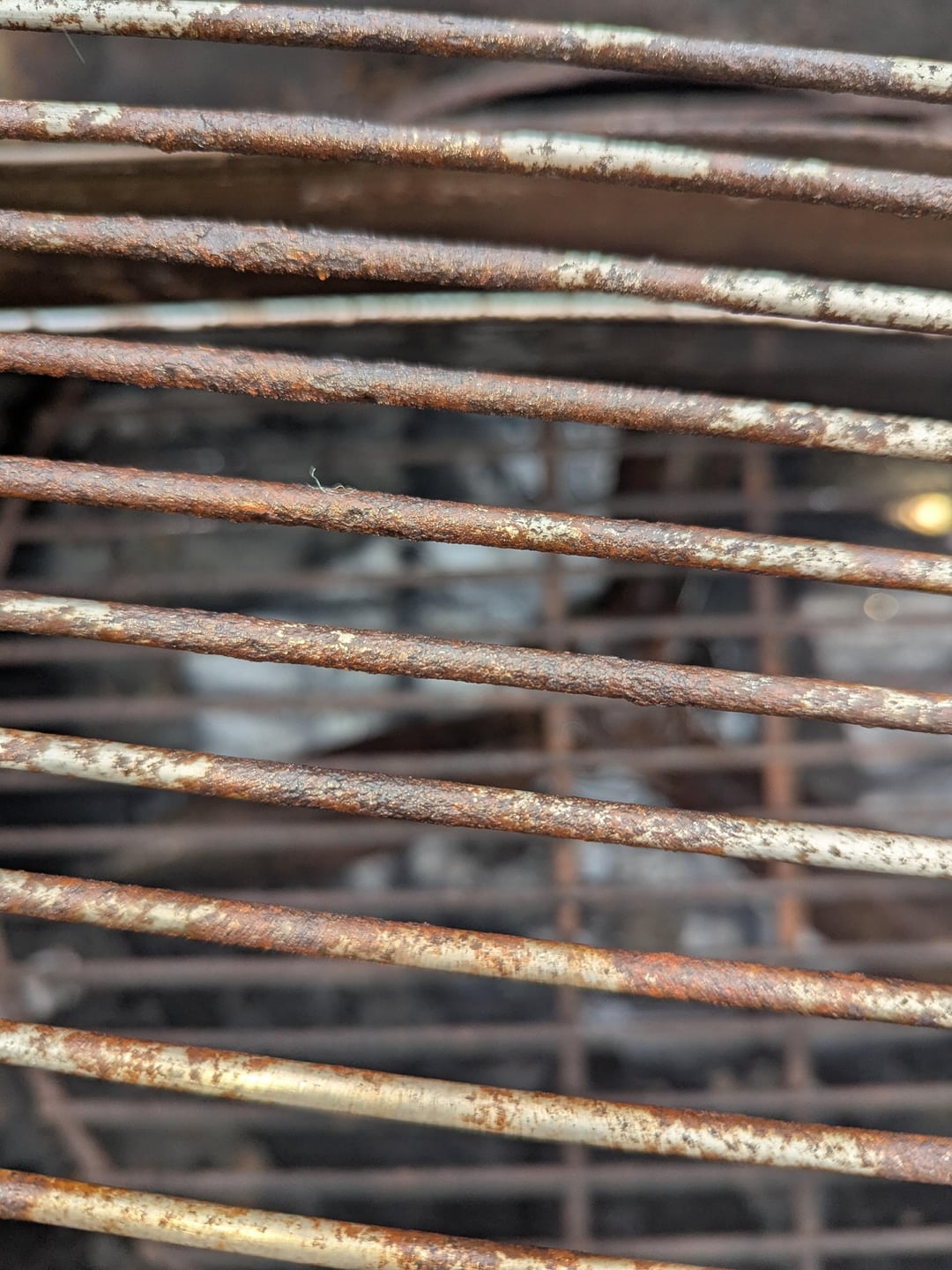 The problem is the grill grate, it's very corroded. I suspect it's not a stainless steel grate and some kind of cheaper plated steel one.