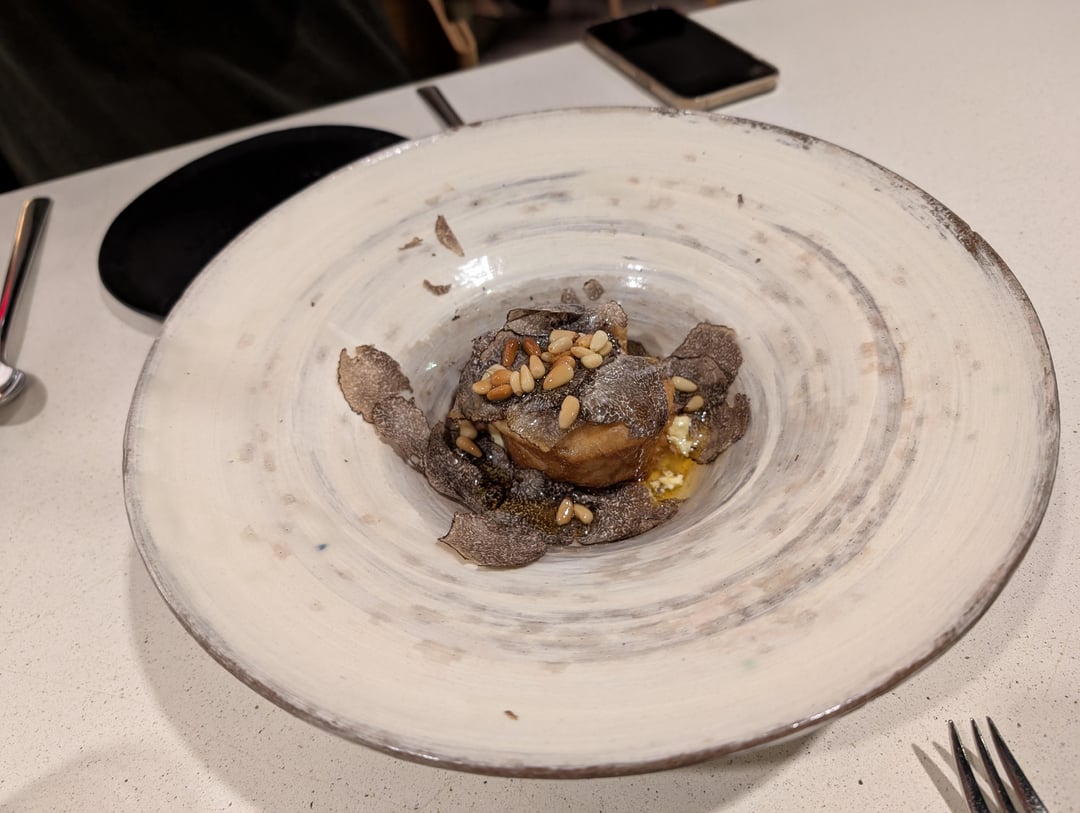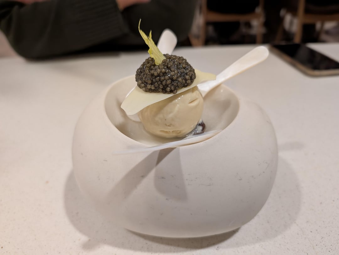 We ordered both supplements – the caviar with a savory ice cream and brioche truffle. The truffle dish was delicious and I enjoyed it way more than the caviar. To me, the caviar was overly fishy in taste. On the other hand, the truffles were generously served on the dish and complemented all the different components by letting each ingredient's flavor shine through.