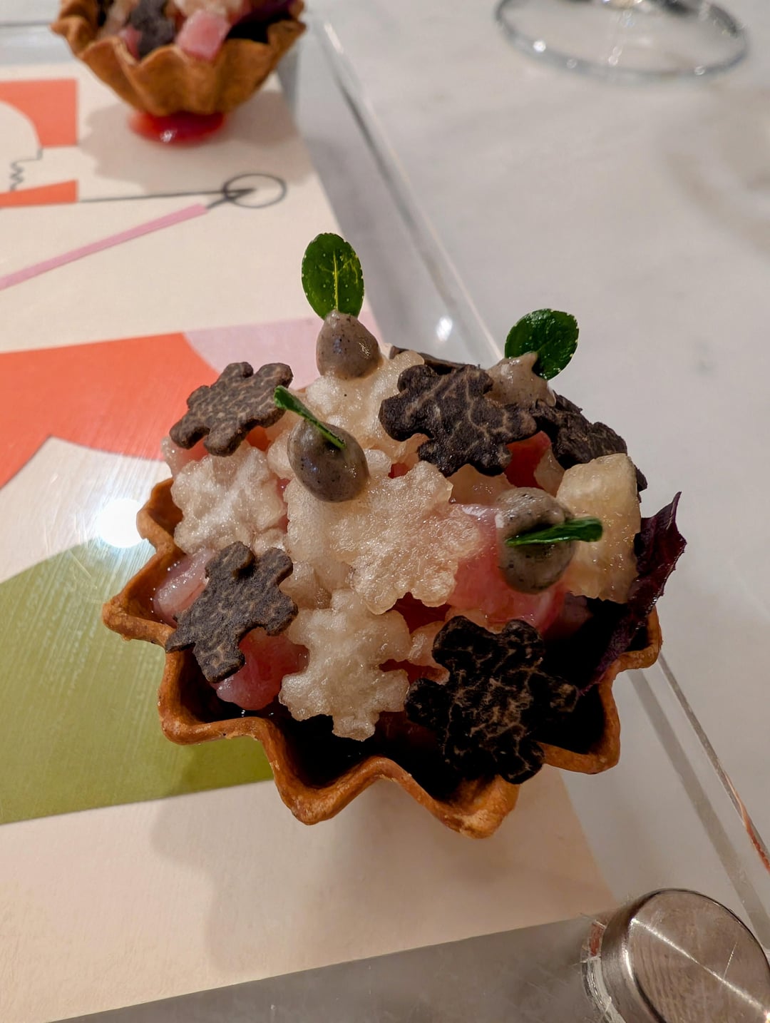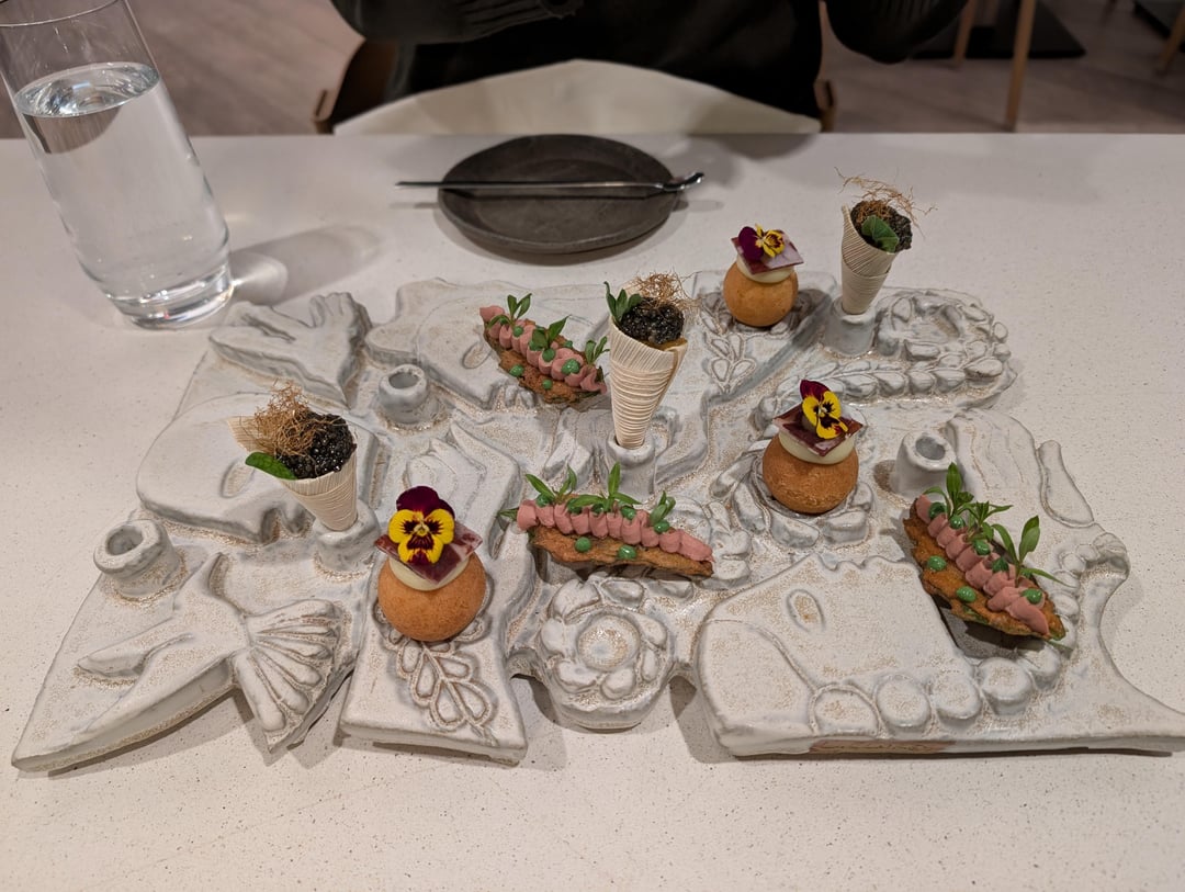 I purposefully didn't look at the menu, pics, or reviews because I wanted to be surprised. My least favorite was the sweetbread. The taste and texture was a bit off putting for me. Some of my faves were the amuse bouche tartare, honeynut squash soup, caviar corn, chicken liver, sour tamarind candy, and raspberry jelly.