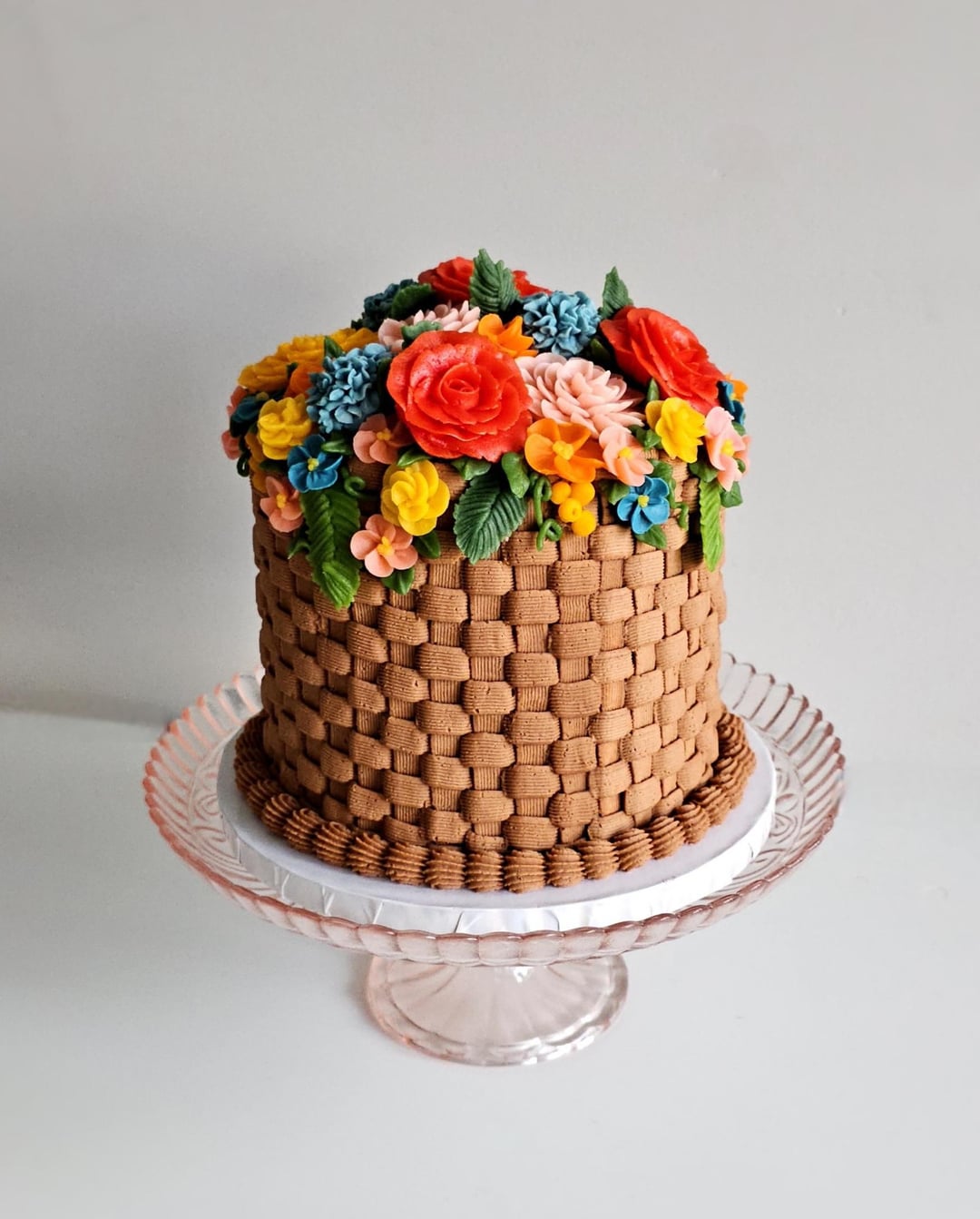 Cake I made my sis for her birthday. It was the first time I've tried a basket weave and it turned out better than I expected! I think if I had used a different frosting it may have come out a little better, this one was pretty soft and airy.