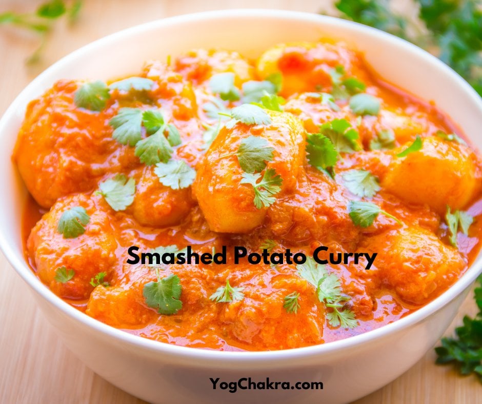 4 medium-large potatoes, boiled and roughly smashed; 4 tablespoons cooking oil; 5-6 fresh curry leaves; 1 finely chopped green chili (optional); 1-inch piece of finely chopped ginger.