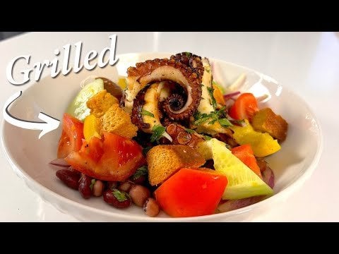 • Grill the octopus until there are char marks and its warm to hot, set aside