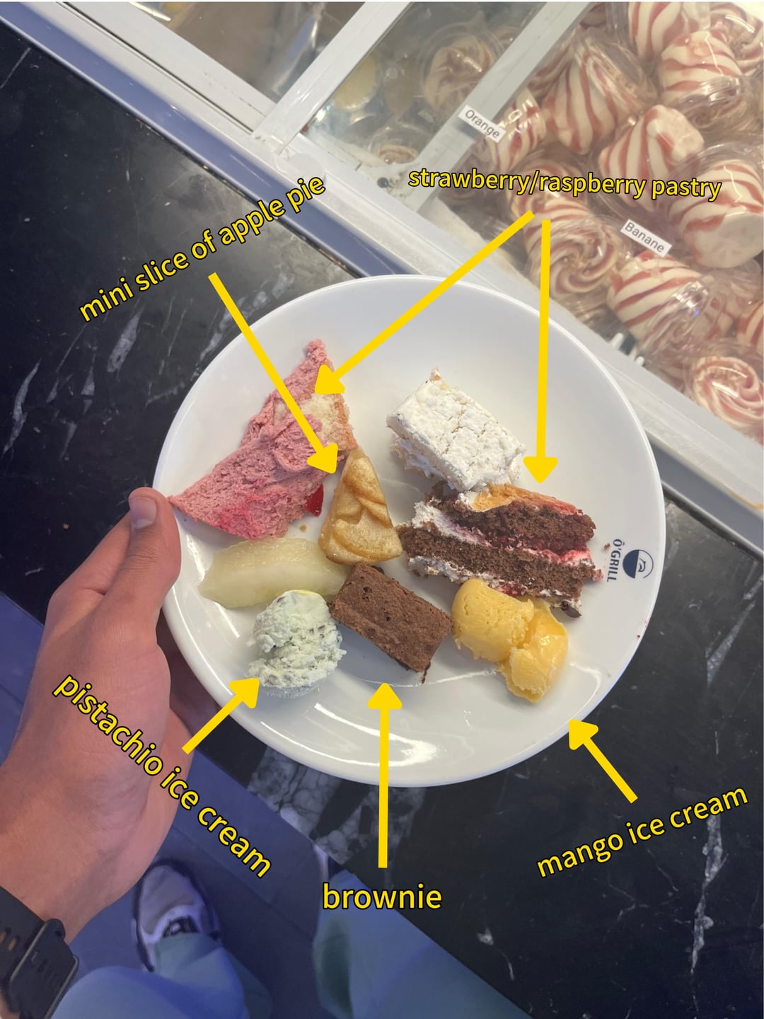 And it’s more difficult with desserts size and calories, but I’d say up to 1000 for last two plates.