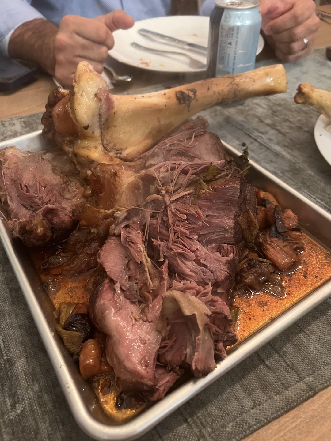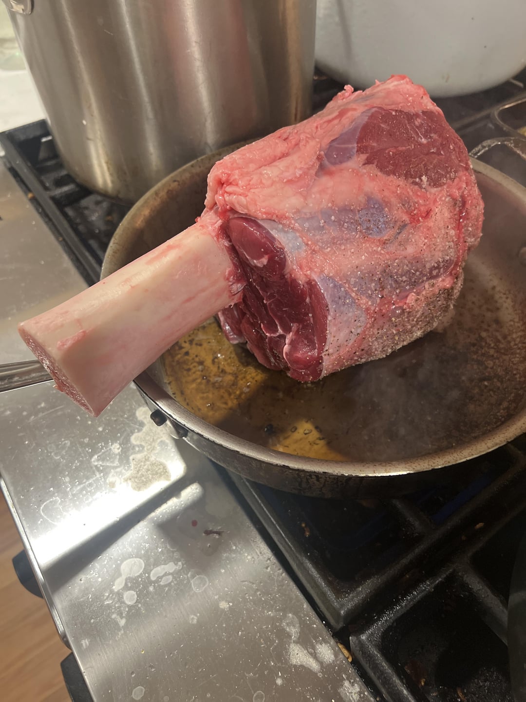 Two 6LB Beef shanks frenched, heavy salt and pepper then seared off and placed into their own separate bag. Also in the bag is a bunch of parsley stems, thyme, two bay leaves, 2 cups of a caramelized mirepoix that had been deglazed with a Malbec and a cup of homemade beef stock. Bags in the bath at 180 degrees for 24hrs. Bags pulled hammers carefully removed and seared off in my wood fire ooni pro. Served with a demi on the side. Incredible, first time I have used a mirepoix or liquid in my cook and will do it again an again.