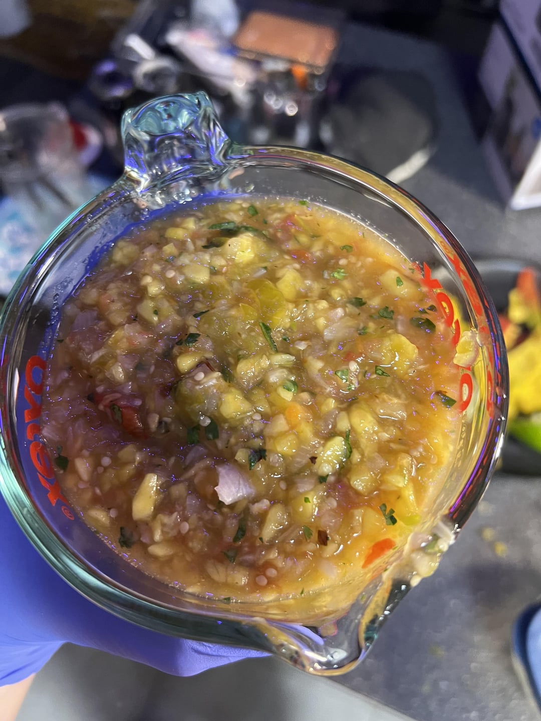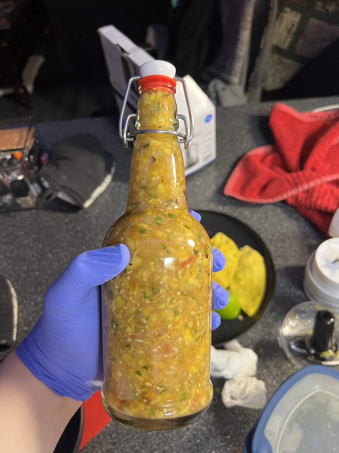 My favorite one I’ve made so far. Has a nice blend of smoky, spicy, and fruity flavors. I used tomatillos, a tomato, habaneros, a shallot, mango, garlic cloves, fresh lime juice, cilantro, Himalayan pink salt, and pepper.by Kadonian 1 Comment TeaNumerous9099 1 year ago Chunky fire!Write A CommentYou must be logged in to post a comment.
