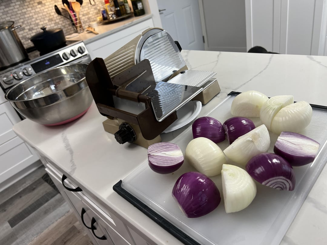 Is that a meat slicer I see ? Looks amazing btw. I like the crock pot bc 6-7 hours of gas can be pricey.