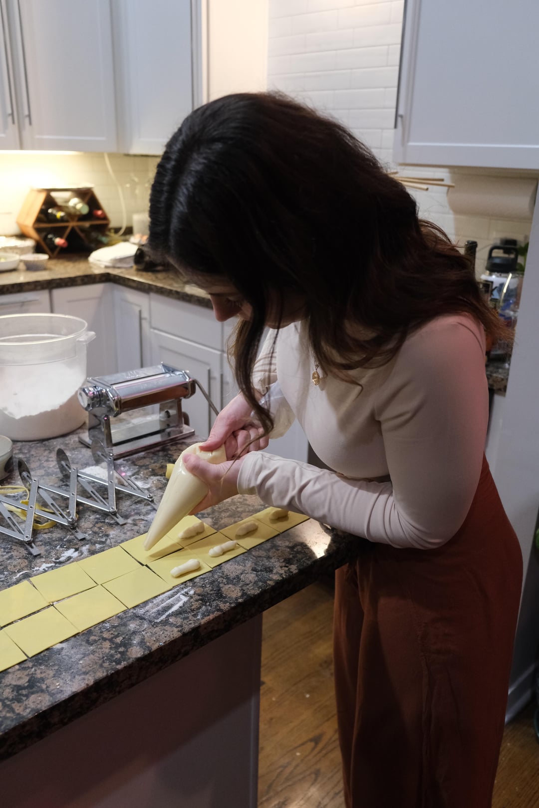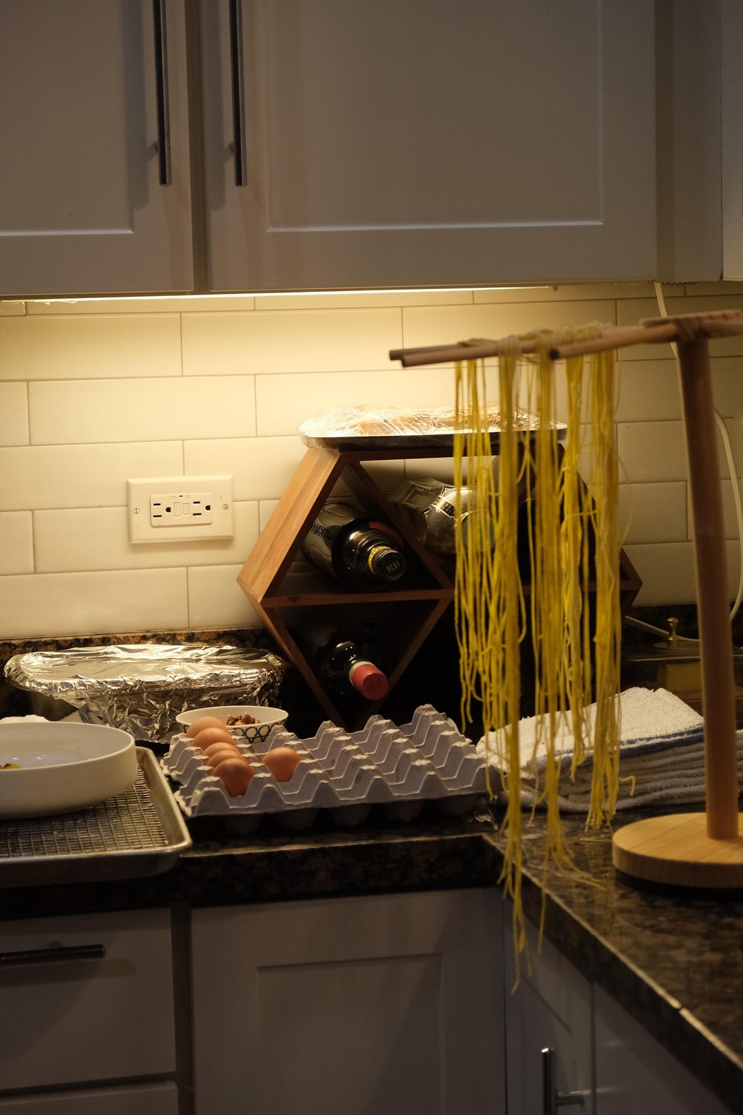 I couldn’t believe it when they messaged me a few weeks later to tell me I won a dinner with Jason Vincent. I live 2 min from Giant and eat there regularly. We connected on the phone and arranged a date + some details – he said he was open to anything, whether it be cooking specific dishes we request, or teaching us some skills. My husband and I have recently been getting into making pasta and Jason agreed to treat us to a pasta making lesson. There are few things I love more in this world than pasta, red wine, and not having to leave my house for dinner. This was shaping up to be my ideal scenario 😂