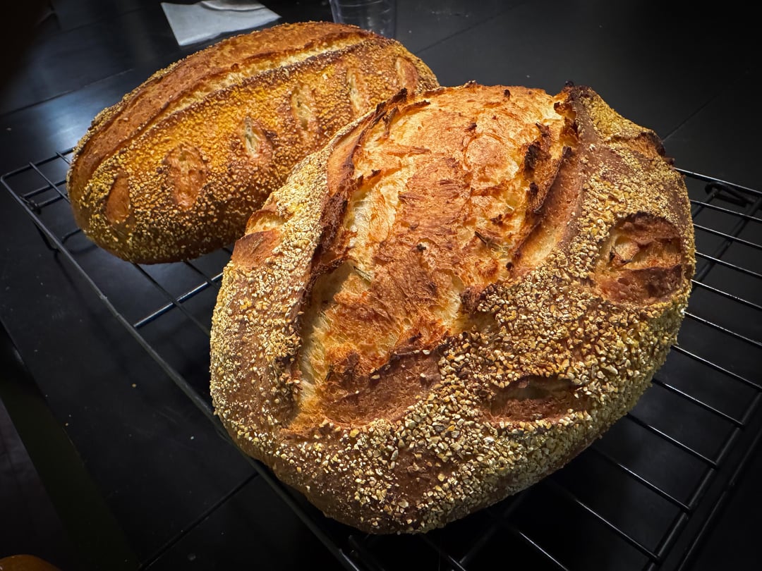 So I’m trying to bake a new recipe every week in 2025. Last week was this rosemary, ricotta, polenta loaf from KAFs Big Book of Bread. It is delicious and moist, filled with rosemary which I love.
