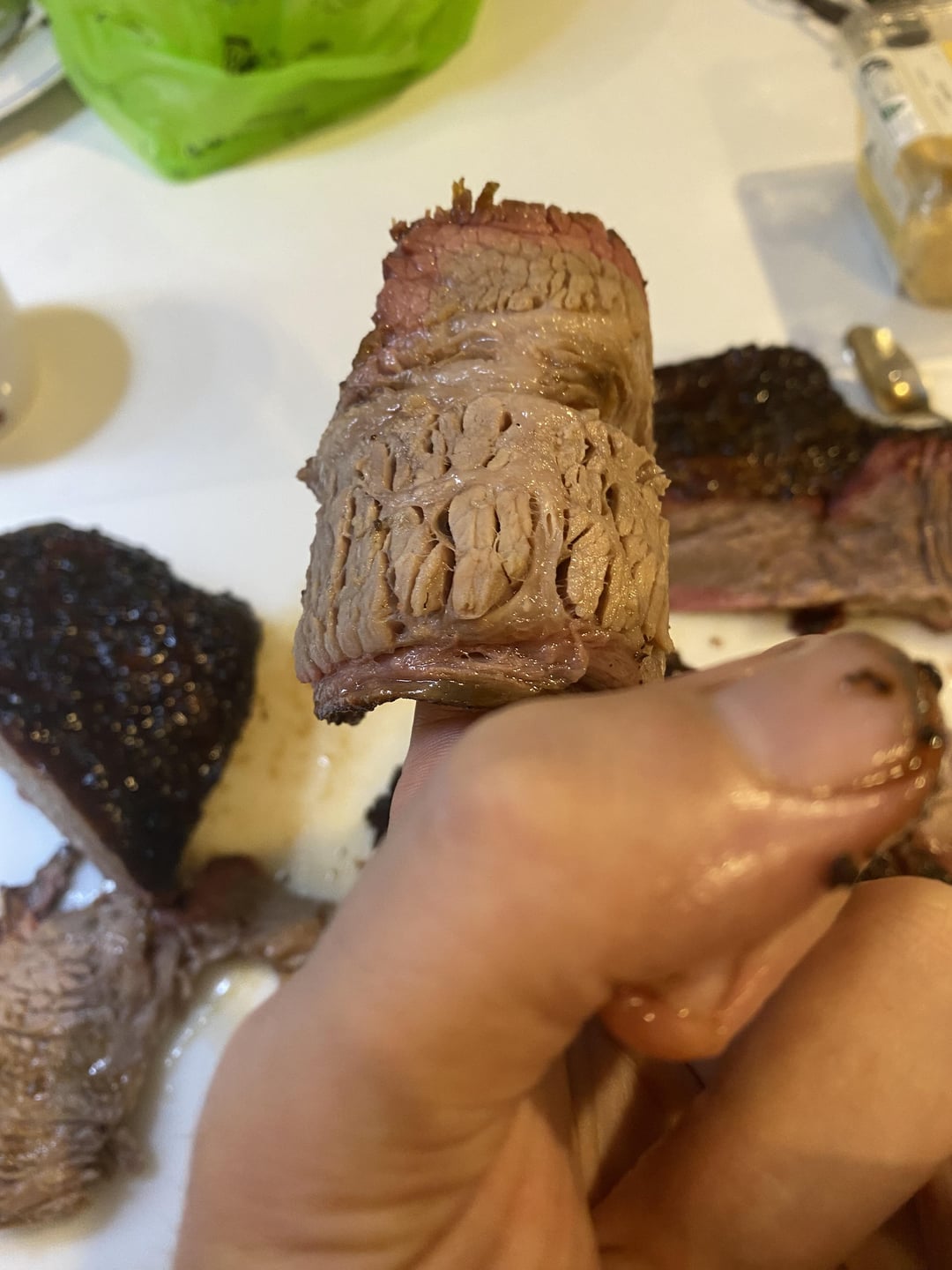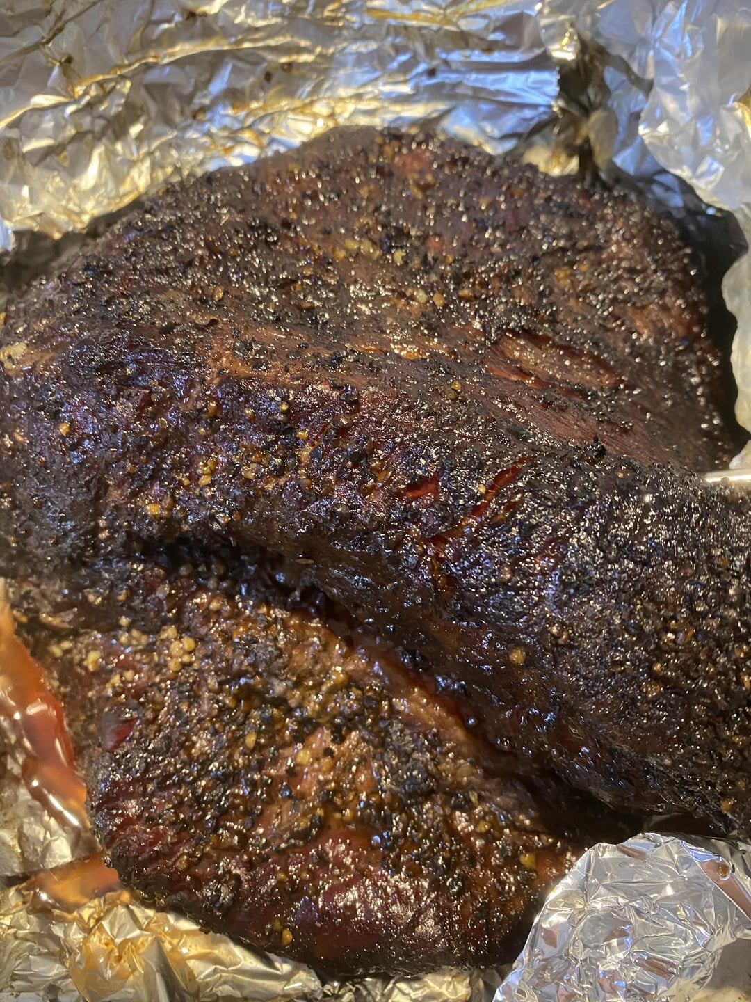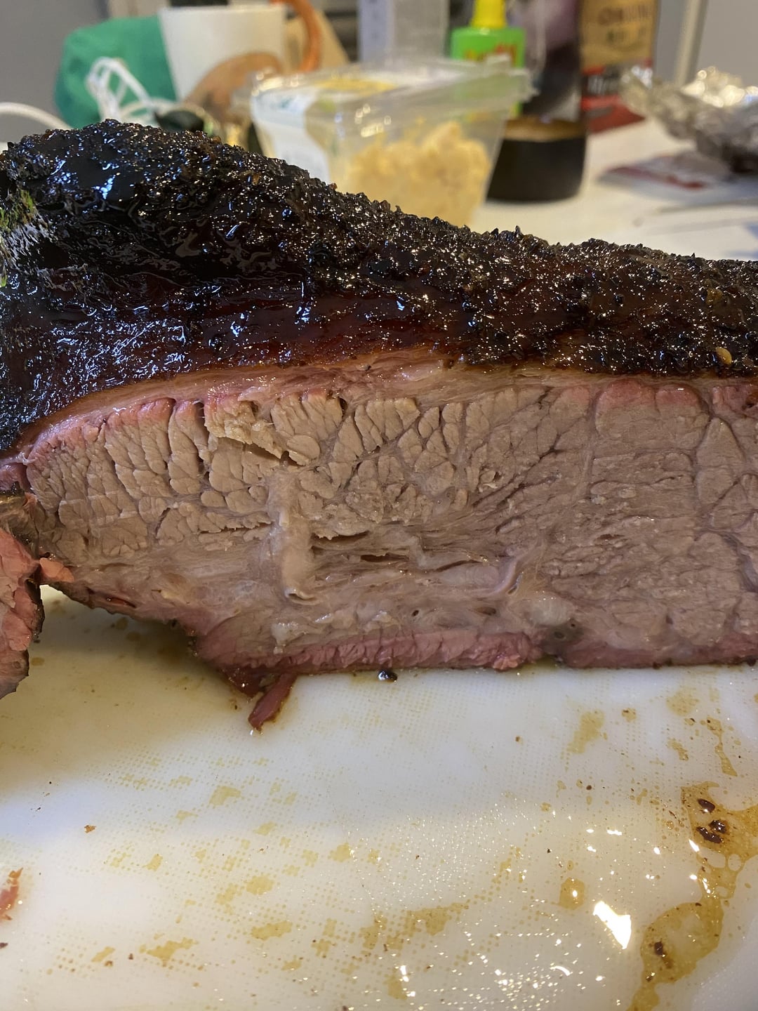 so i got an off set smoker for christmas and had my first cook. these off sets are wild compared to the weber but i had a half a brisket and though i would give it a go. temps went from 220-300 wrapped at 184 took it to 207. took 8 to 9 hours, i so happy with the results it was like butter i’ve never had brisket like it before great bark tacky and sweet, falling apart and so juicy. i was so shocked i thought i was going to get in trouble making something so good.