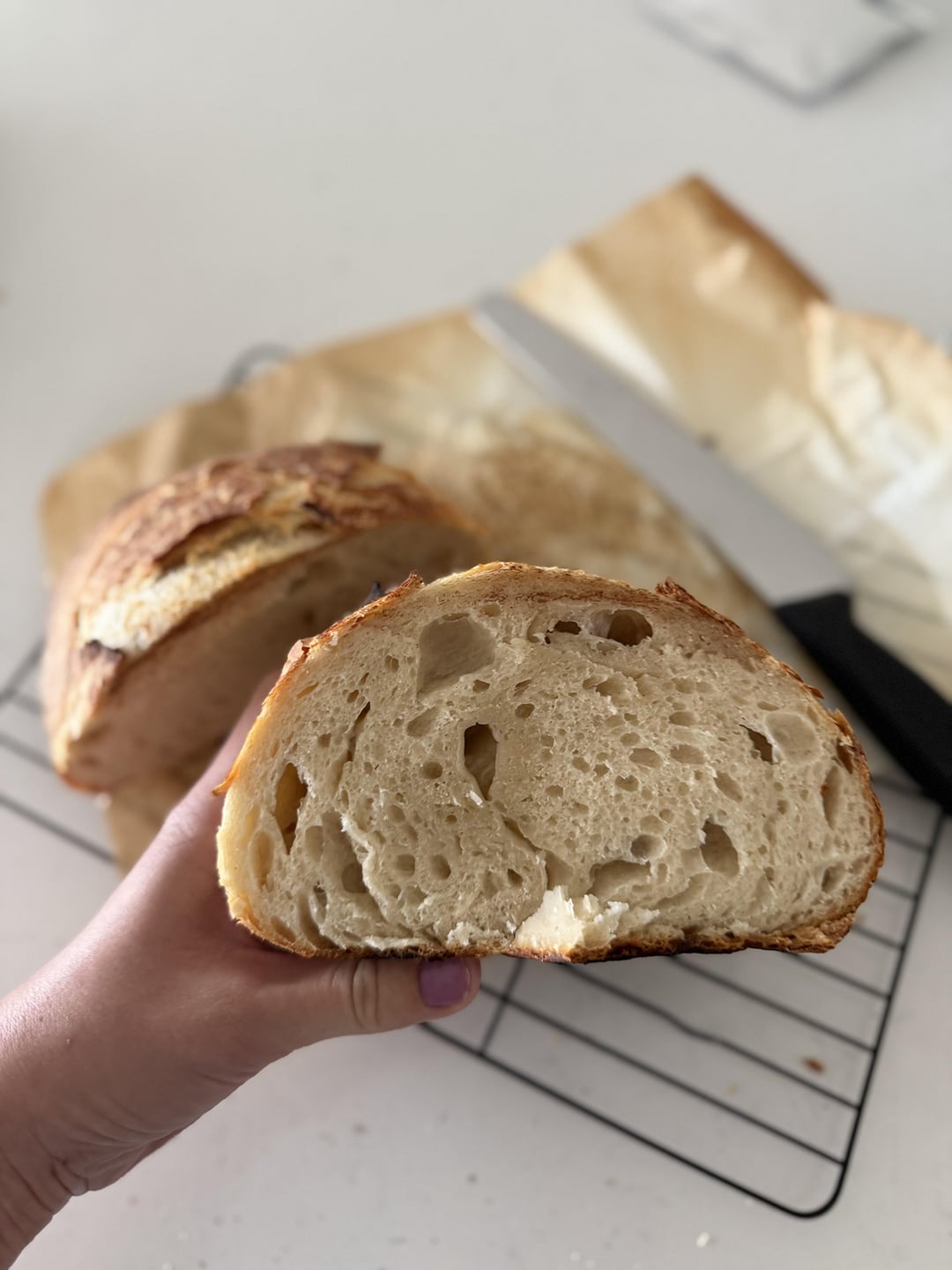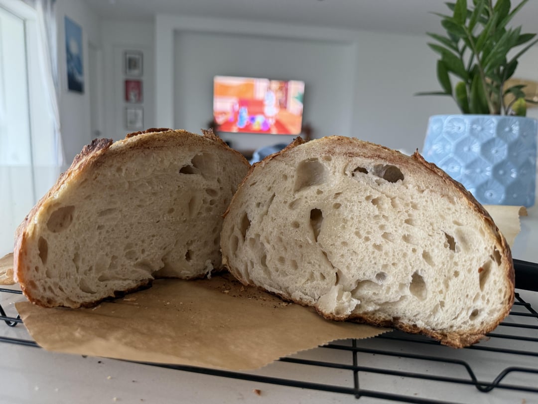 My SIL gave me some of her starter. She adds rye flour, bread flour and water to it. I used Alexandra’s Kitchen recipe. I had 0 faith in myself so I’m pretty impressed 😂🤷🏼‍♀️