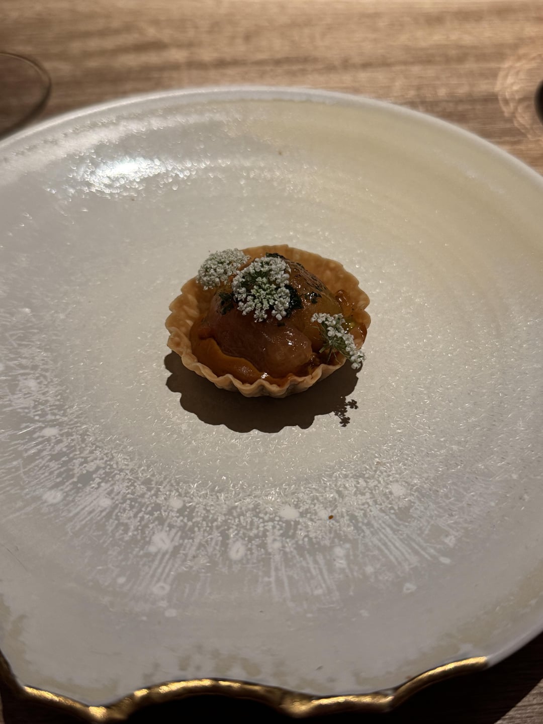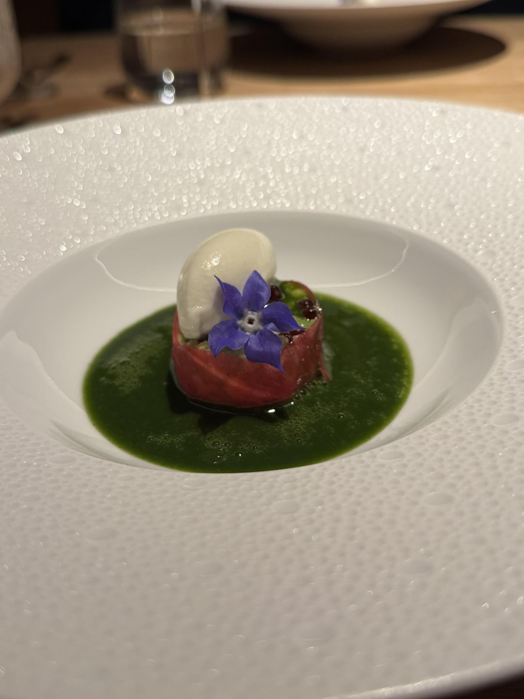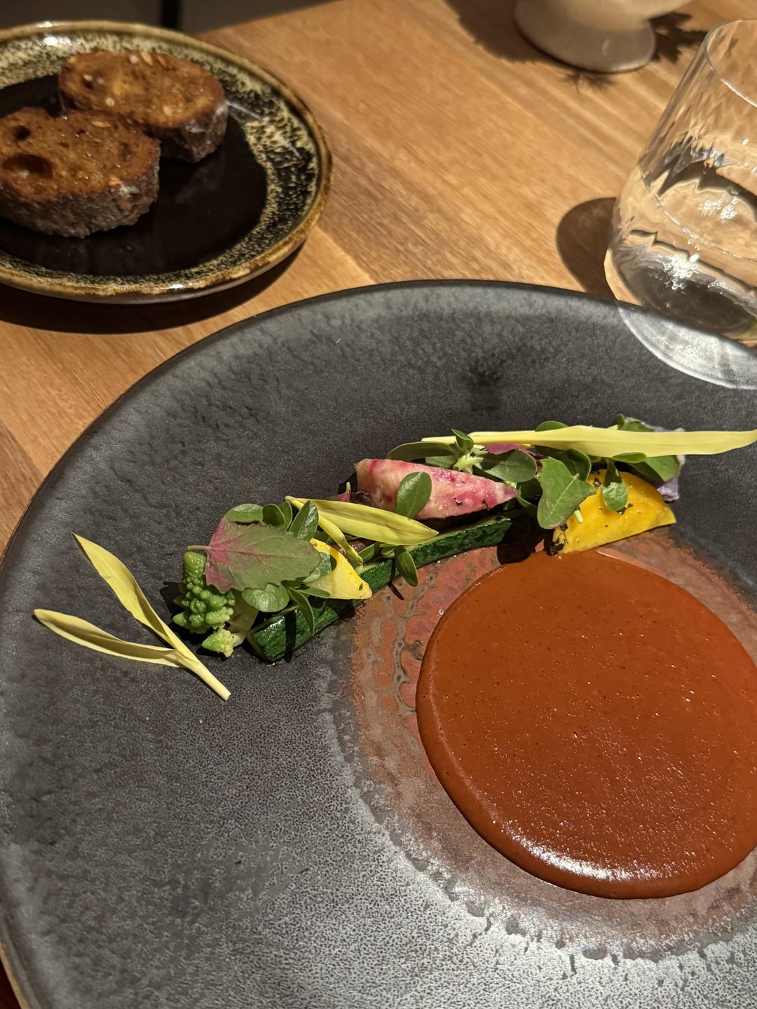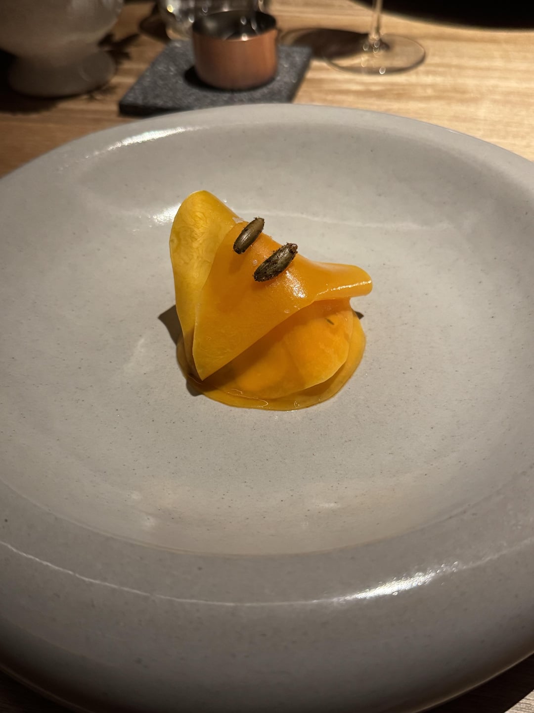 Upon being seating our waitress, Vivi (who was outstanding), asked if we had any dietary restrictions. I opted for the vegetarian option, my husband requested no shellfish and our two friends went with the regular chef’s menu. I am not a vegetarian, but I find that I typically prefer the veggie option at tasting menu restaurants, and if there is a meat dish that my husband thinks I will love he lets me have a bite. Sometimes the vegetarian presentations and flavors can feel like an afterthought but I was really impressed with all of my dishes and felt like they really held up to their meat dish counterparts.