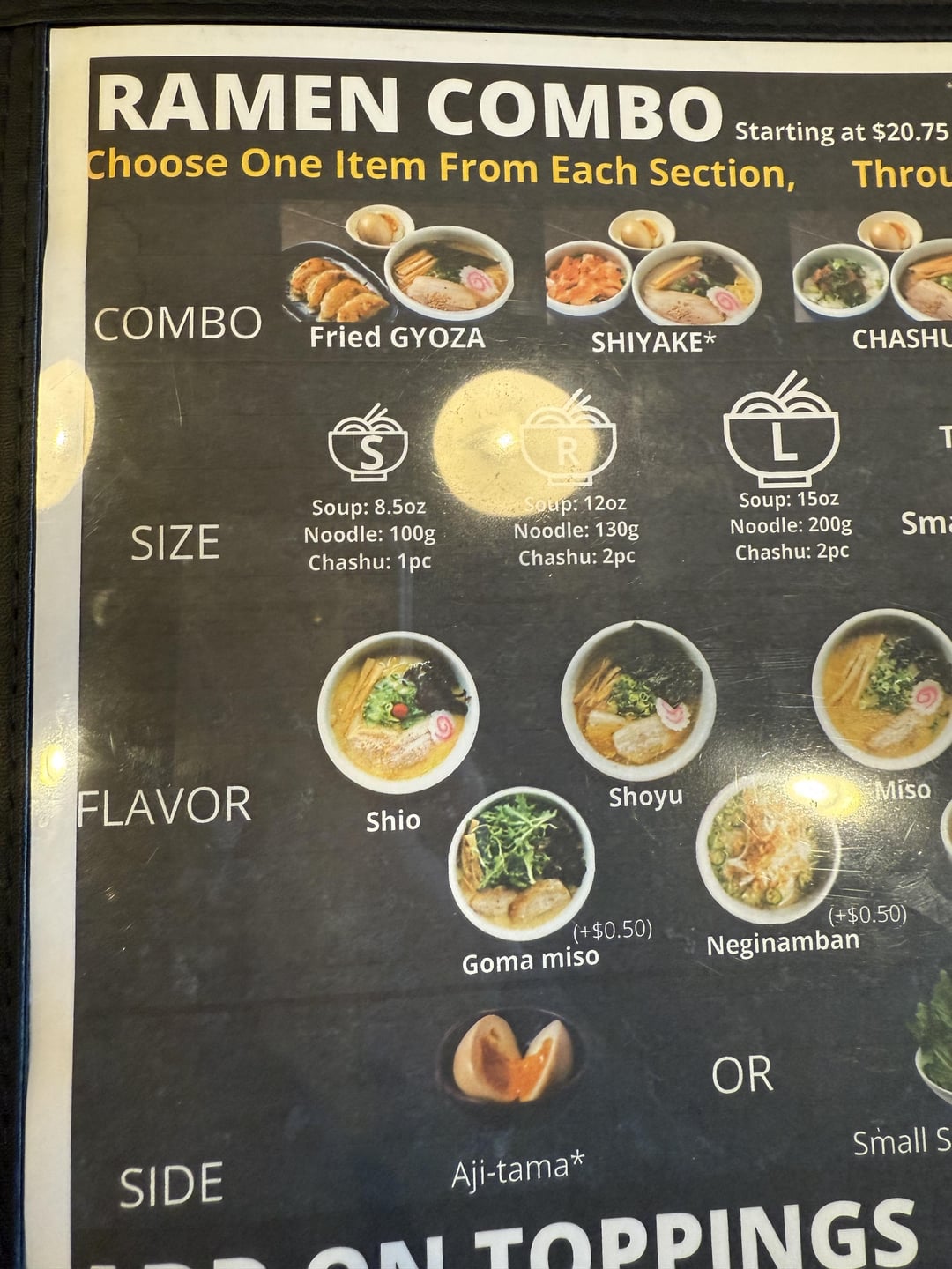 small shio ramen, 8.5oz of soup, 100g of noodles, one piece of chashu, one egg