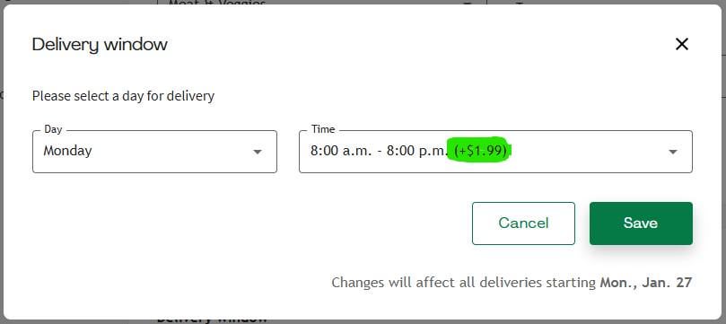 Hello Fresh adds New Delivery Cost for Sunday and Monday Deliveries
