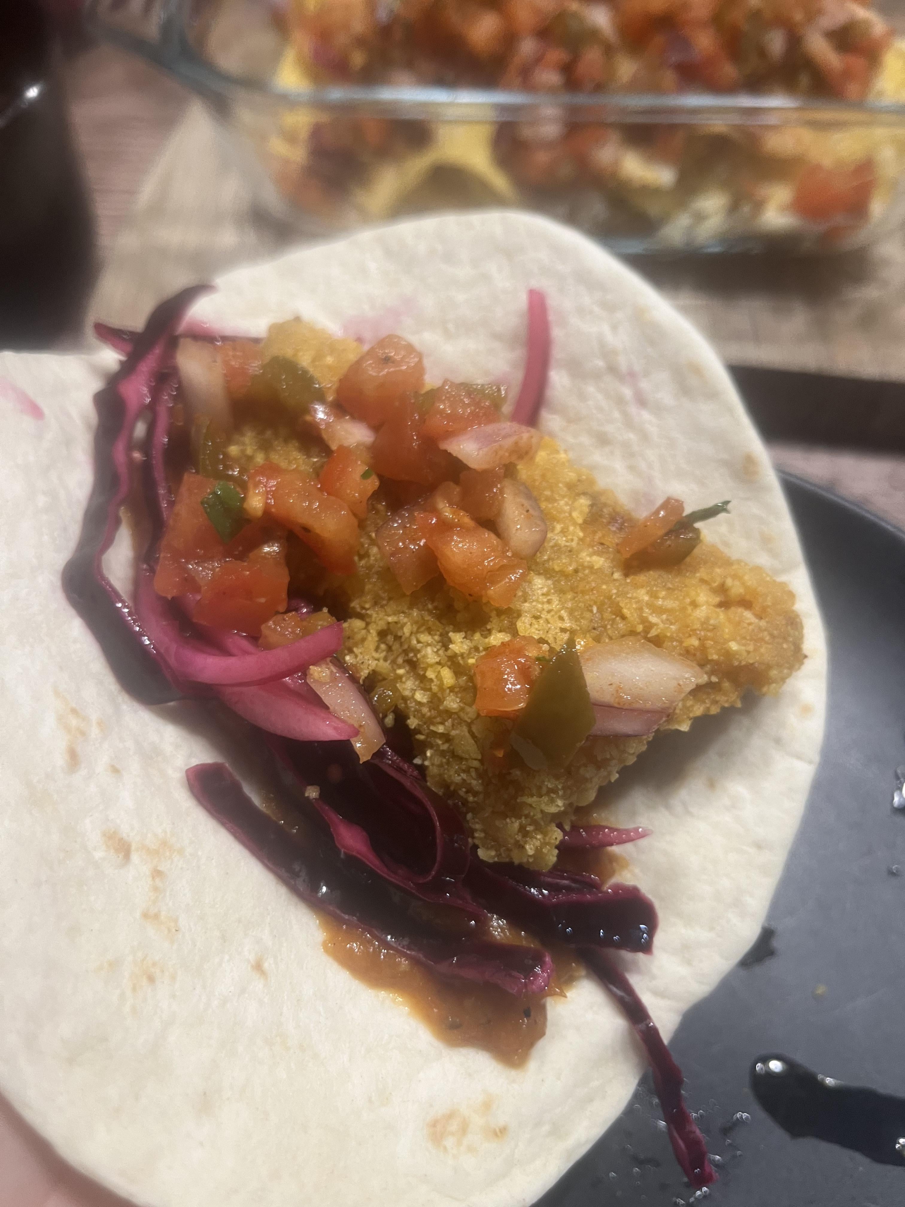 Fried baja fish tacos (cod) salsa roja, pico de gallo, pickled red cabbage/onionby dustmonk Write A CommentYou must be logged in to post a comment.