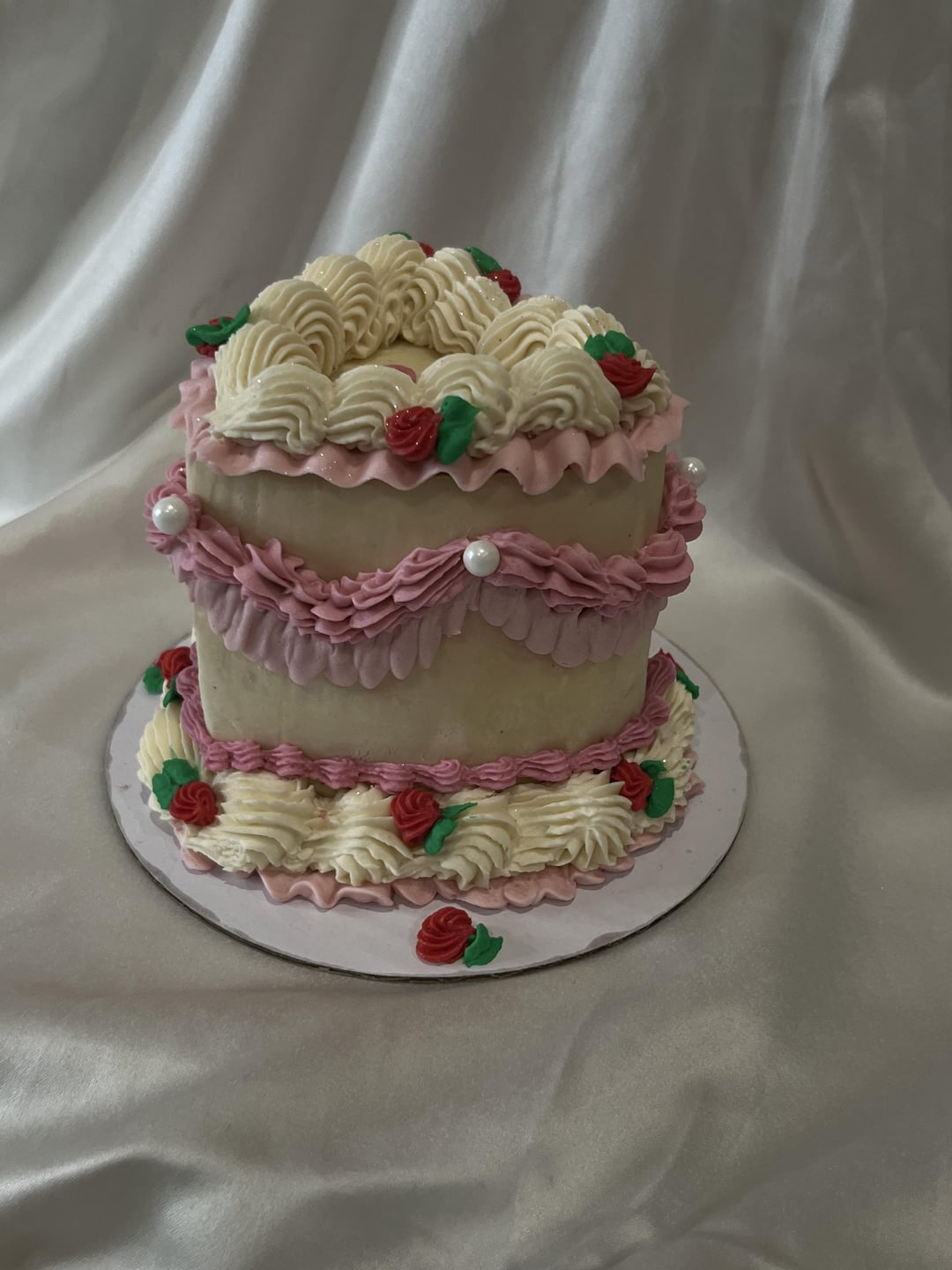 used faux swiss meringue buttercream ๐ค๐ผ little messy but itโs okay, took me over a day LMAO please lmk what you guys think ๐