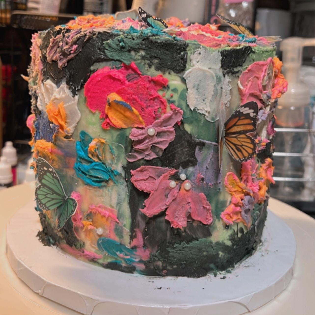You know what, If the base coat, so to say, what super smooth, it would have been perfect imo. This is a style I come across every now and then when looking for inspo on abstract cakes, and I always think of it as orchestrated chaos. And that is not necessarily an easy thing to create. I actually really like it, OP!!! I really hope you had fun doing it, that’s the most important thing, whether it’s your first or you 100th cake.