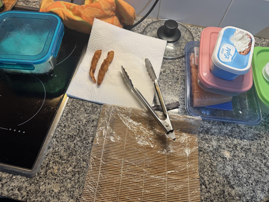 Where I live we don’t have a lot of special ingredients for sale to make many different styles, but I got my hands on some frozen fried torpedo prawns to change it up a bit. Forgot the avocado, that I usually use as well. The fried ones were my favourite!