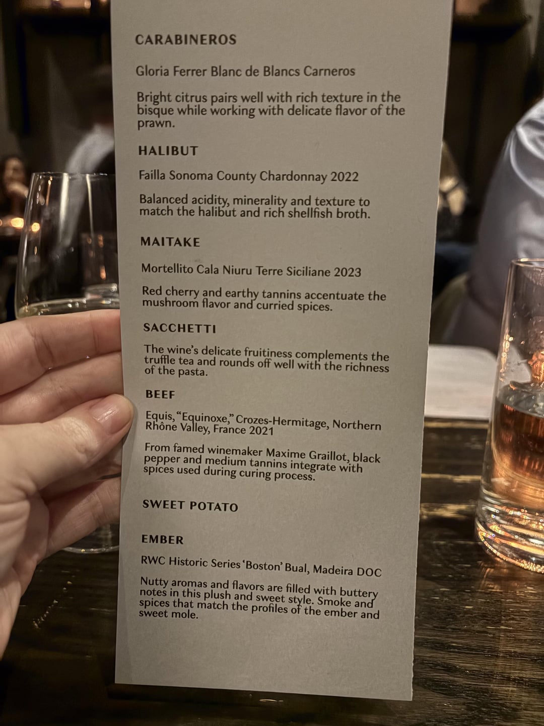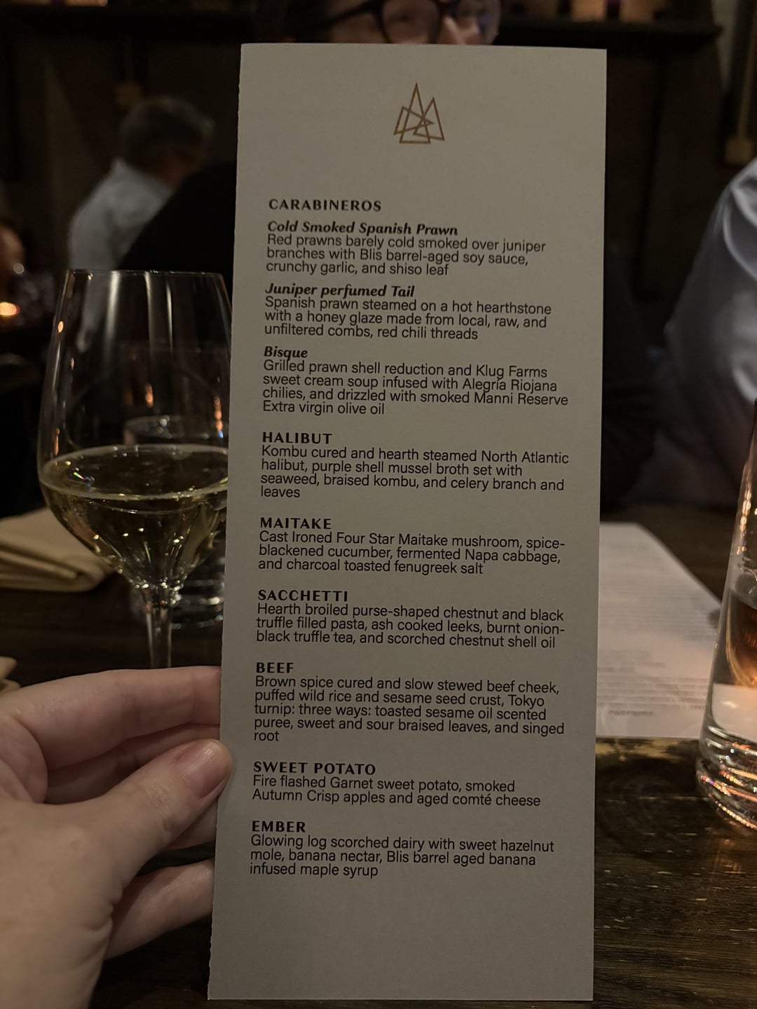 At $115 for a tasting menu, I’ve got to say I think it’s a great deal. Current menu has a lot of seafood, they were great about accommodating someone at our table with a shellfish aversion. I did the wine pairing and found it really enjoyable. I’m also not a dessert wine person, but even that was a perfect pairing with the ember ice cream.