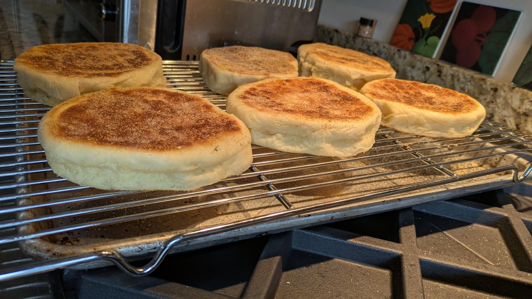 Those look exactly the same size as the food service ones Thomas makes. Nice job. Regular size can’t hold up to a good breakfast sandwich. Also, you could probably make some wonderful eggs bendthedick with those.