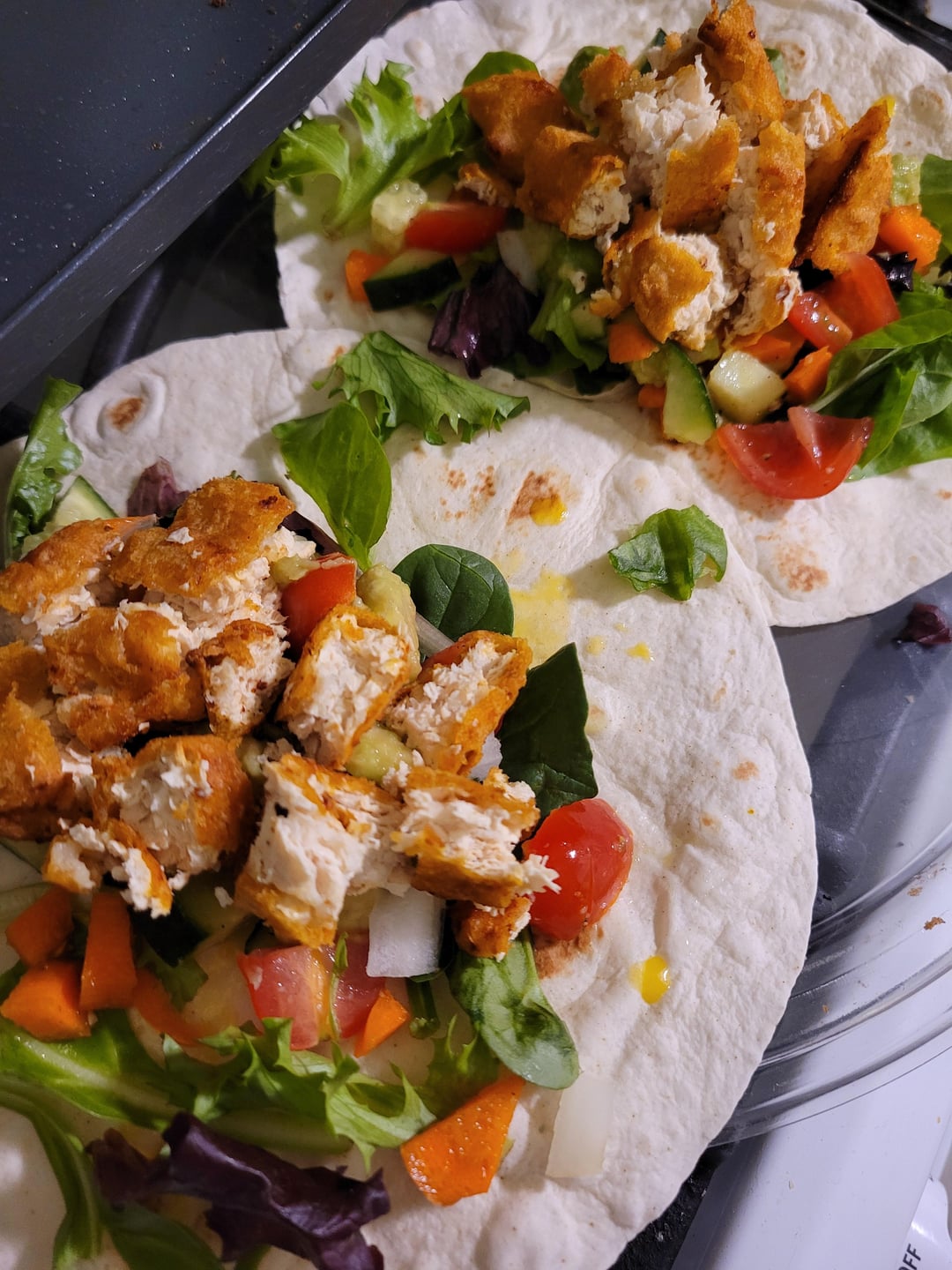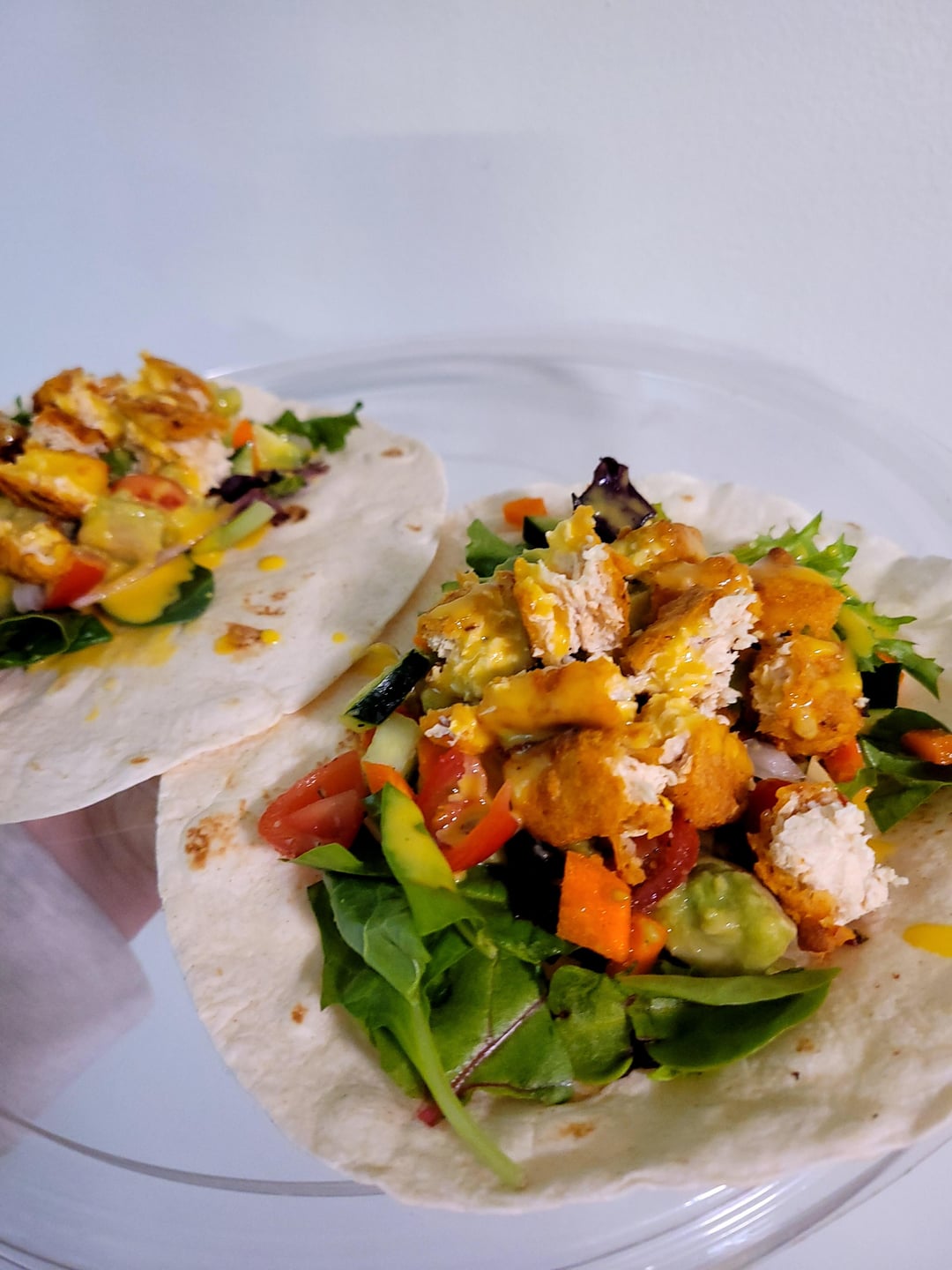 Fish tacos with gardein fishless filets, avocado, pico, carrots and spring mix with an agave mustard dressing 🤌💖⭐️by veggiedesi 2 Comments illyanarasputina 9 months ago what do those fishless filets taste like? Dontfeedthebears 9 months ago I got some filets today for this very reason.Write A CommentYou must be logged in to post a comment.