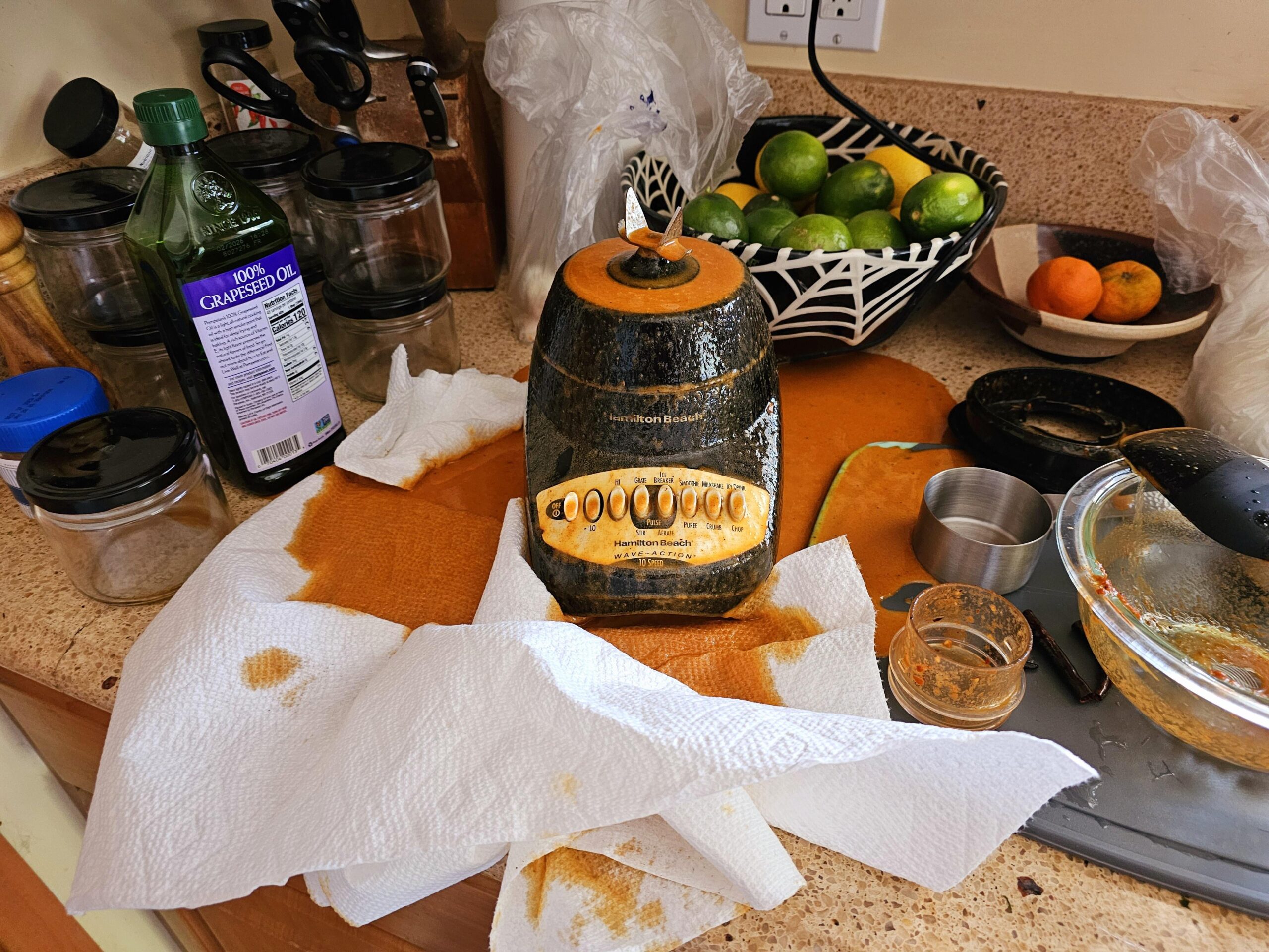 RIP orange salsa. The pitcher became unlocked from the base. Doh! First and, hopefully, last time this happens. I roughly followed this recipe this time.