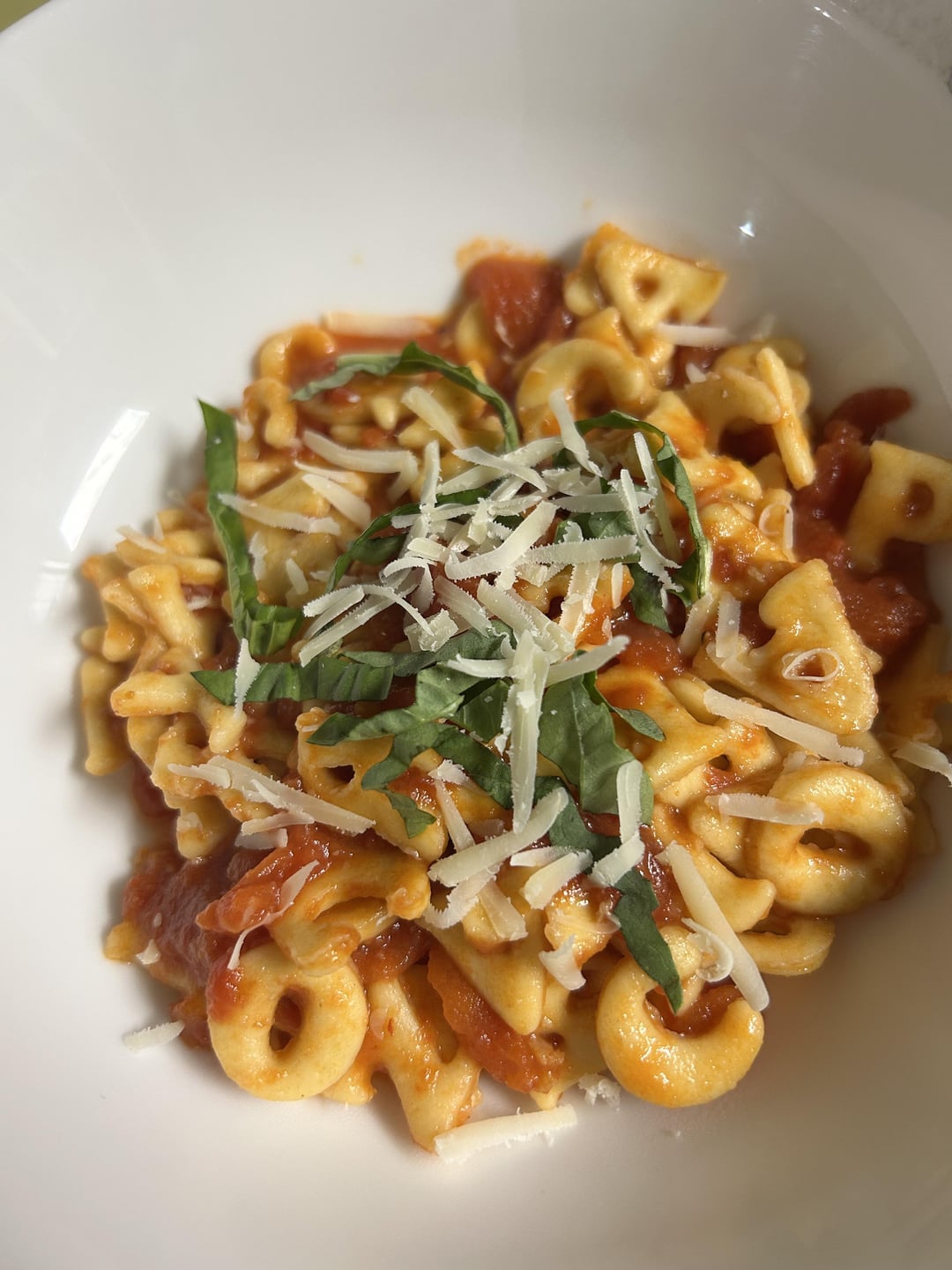 Used alphabet cutters for Alphabeto pasta. I made a tomato and butter sauce to accompany. Basically tasted like gourmet alphabet spaghettios. It took longer than anticipated because I kept spelling things and sending friends photos.