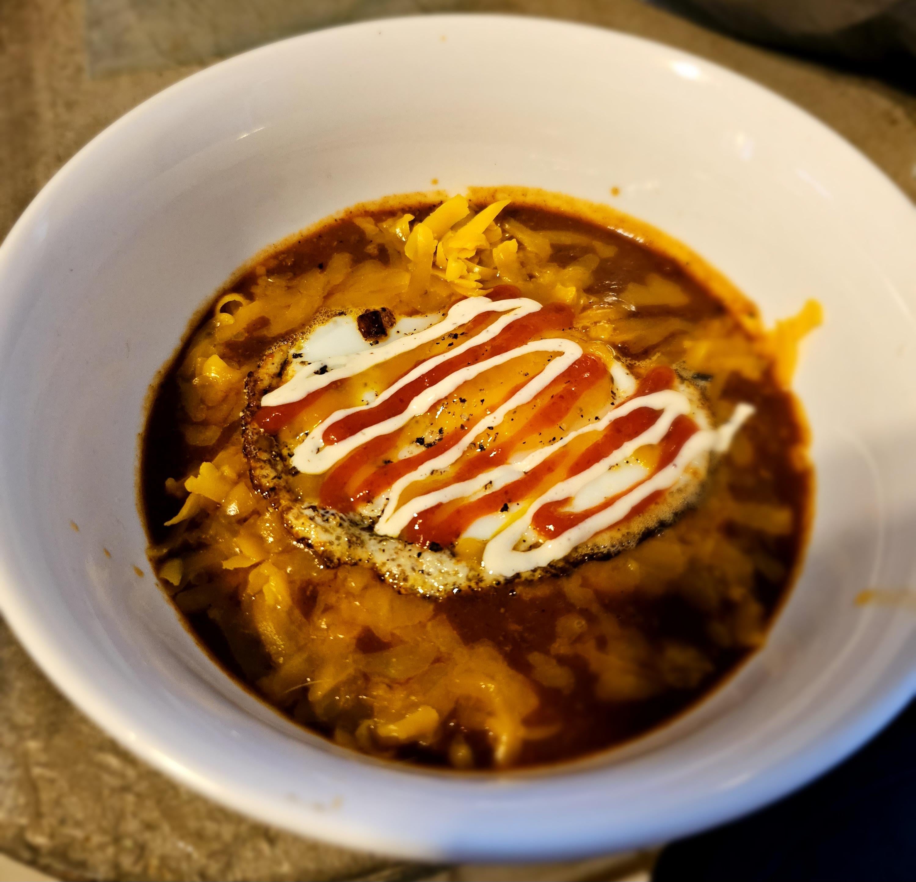 My fancy chili, extra sharp cheddar and fried runny yolk egg. The best meal when it’s 12* outside.by Roriborialus Write A CommentYou must be logged in to post a comment.