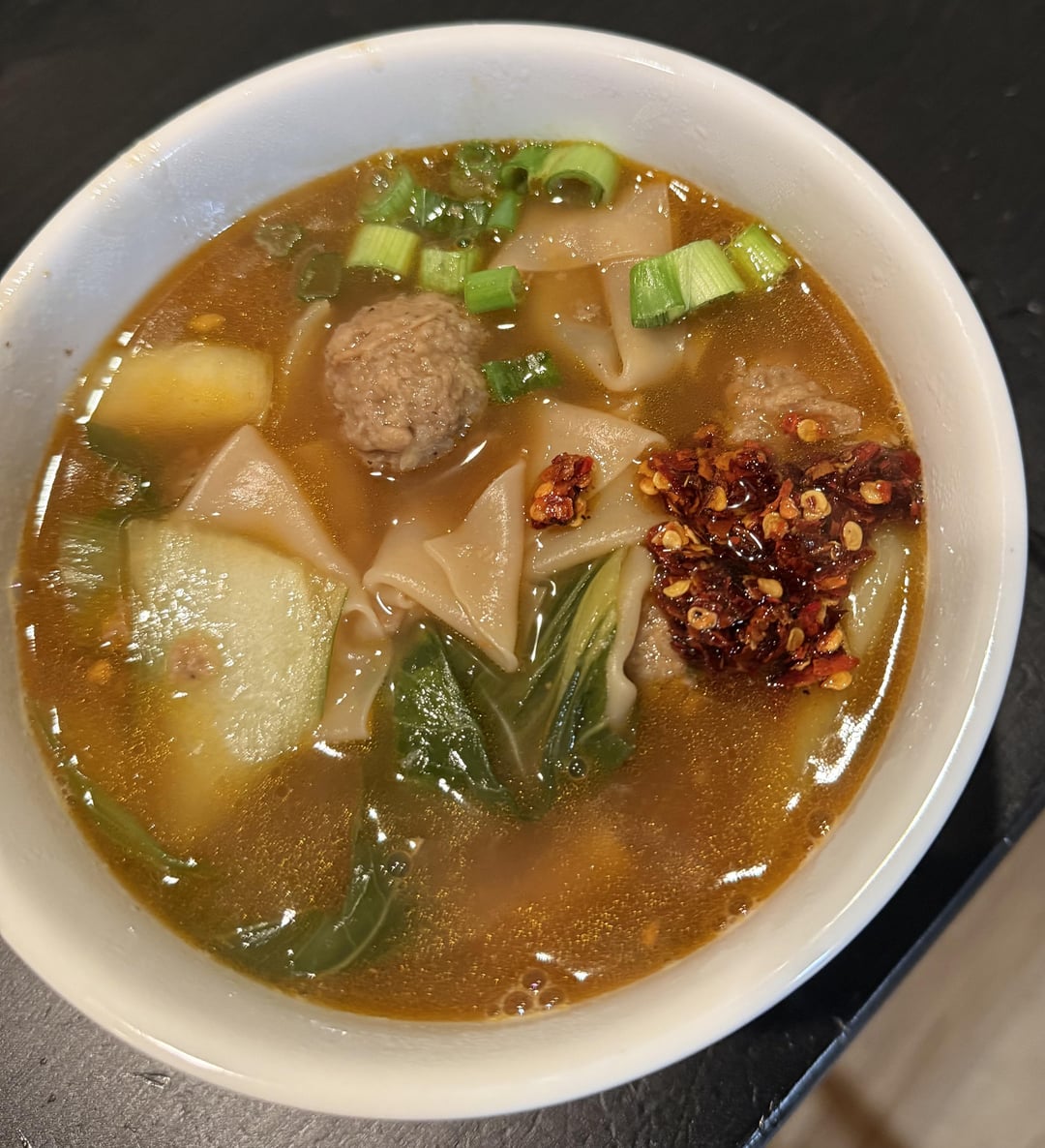 This soup was soo amazing. Beyond meatballs, wonton wrappers, lots of ginger, bok choy, green onions. The broth was very flavorful. The onion and mushroom was omitted because I’m weird. I was surprised how much flavor the bok choy took on. Can’t wait for my boyfriend to make this again hehe. Link to recipe in comments