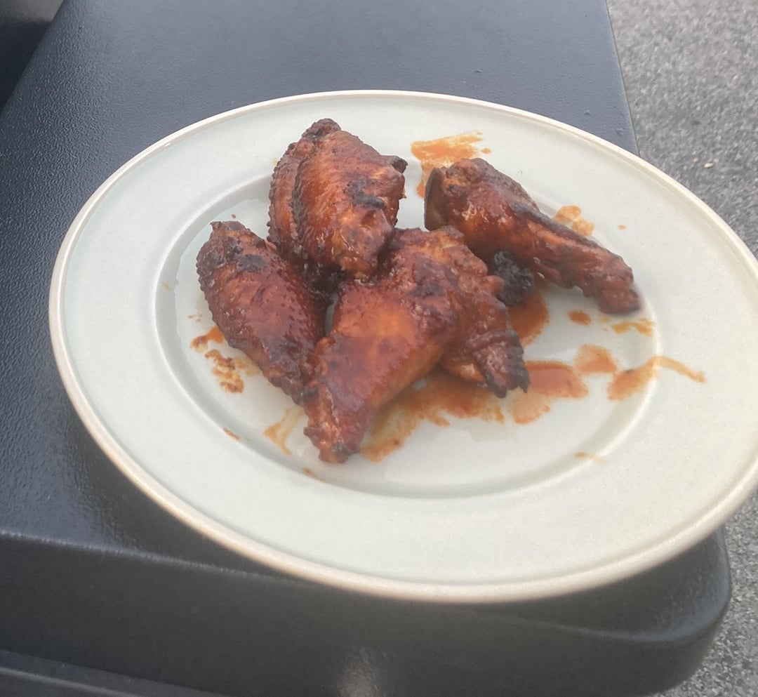 Wings marinated in zesty Italian and franks red hot, rubbed in a homemade bbq rub, then smoked and tossed in franks red hot with butter, and back on the smoker for 5 minutes to set up.