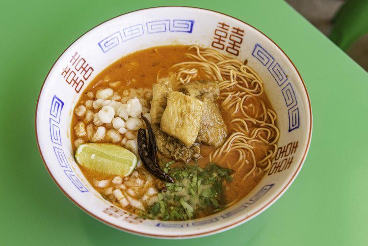 So yeah, I'm Mexican, and I love the fusion of Asian and Mexican fusion cuisines. So I tried cooking Ramenudo once (pic is not mine, I didn't take a photo of the result). It was goood, the mix of noodles and honeycomb tripe was not the perfect match texture-wise, but the noodles and the menudo broth tasted amazing. 8/10. What's your opinion?