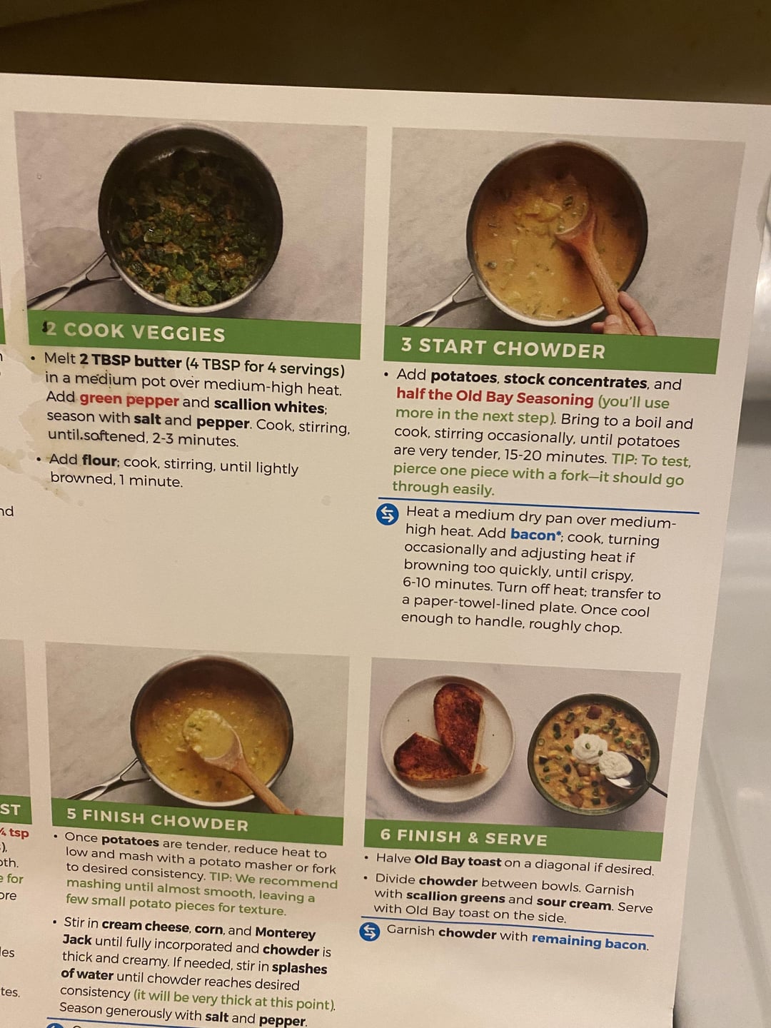 I got this recipe this week and the recipe card is missing a pretty important step where you actually add the liquid to make it a soup! So if anyone else got it this week, and have one of these cards, I’ll post the step from the internet. I had only made this once before so was kinda confused at how it was gonna get liquid-y 😅