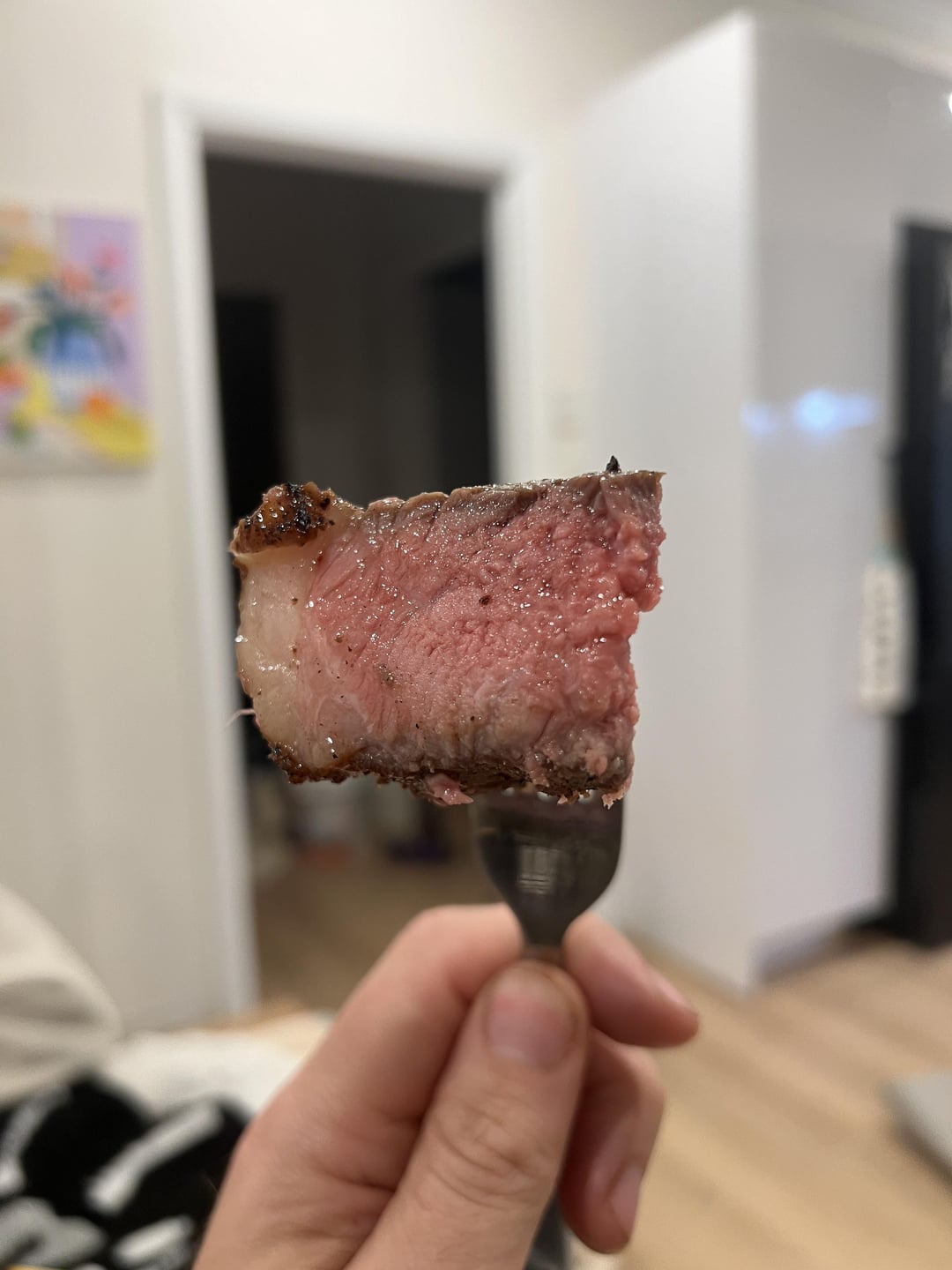 2hrs at 56 degrees, finished in a hot af pan. Learned a lot, can’t wait to continue down this path! Thanks y’all for the info in this sub 🤍